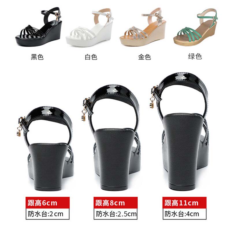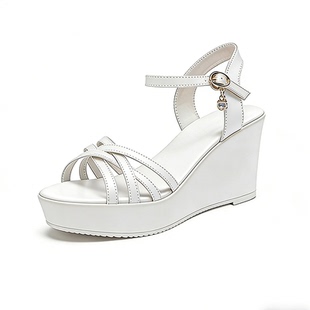 罗马女防水台高跟鞋 6cm白坡跟凉鞋 大码 新款 一字扣 女厚底软底夏季