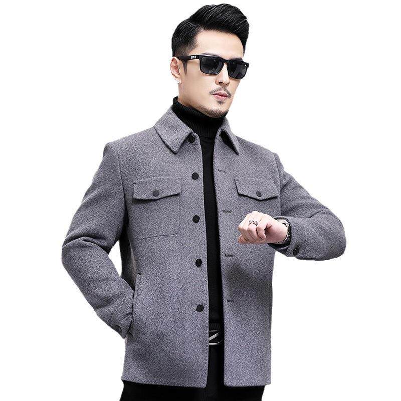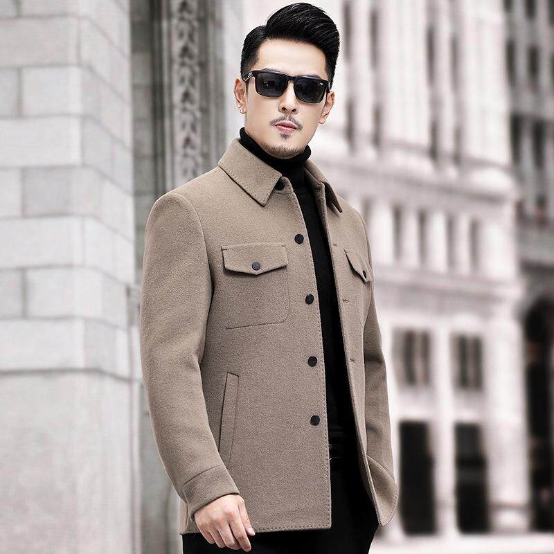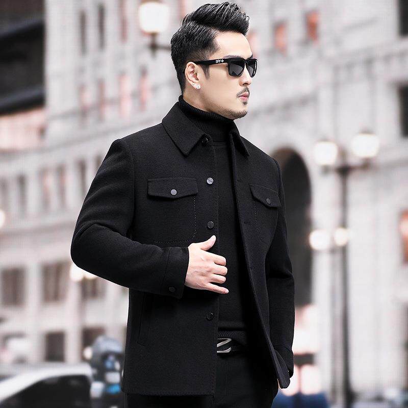 PP羊毛翻领外套秋务商休闲毛呢 夹克冬手工双面呢衬衣3326 男式 版