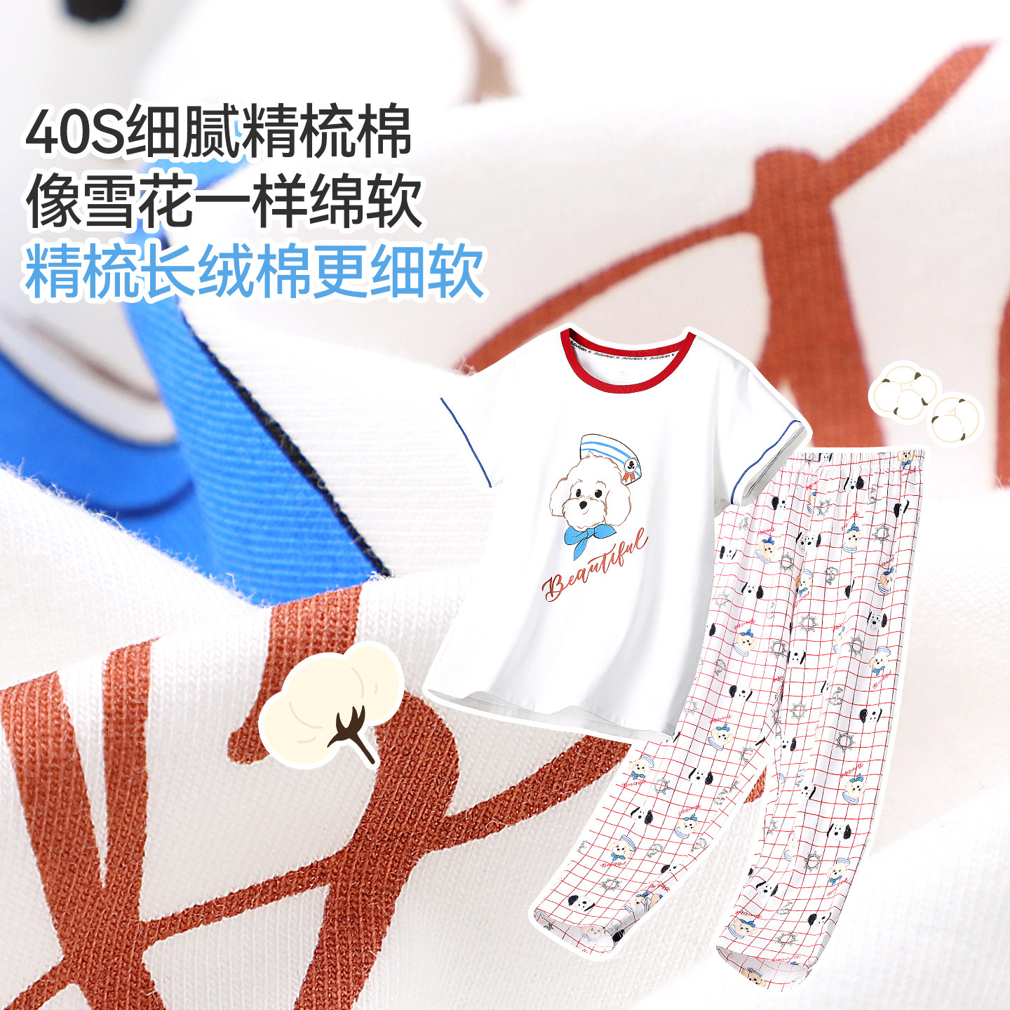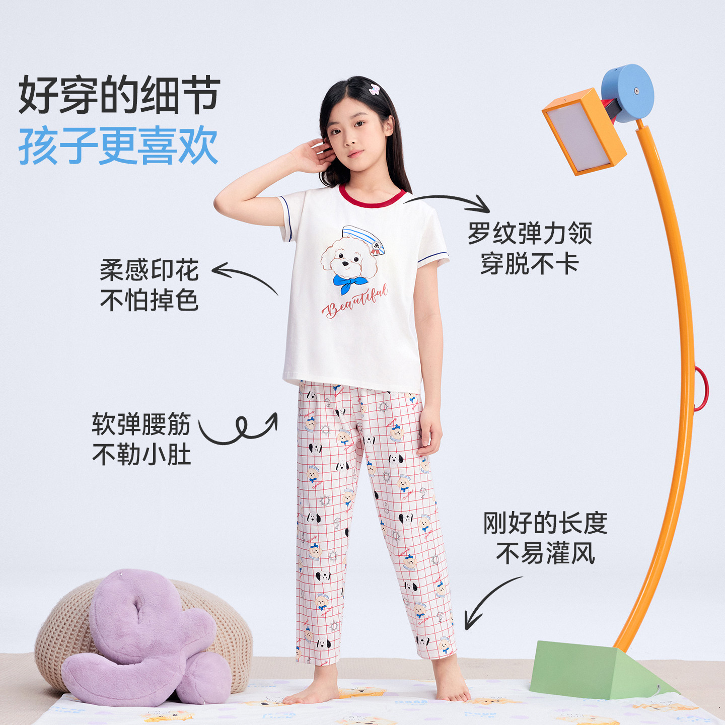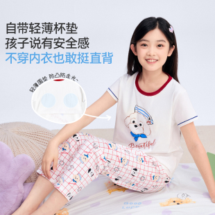 长裤 短袖 女宝宝可外穿 绒棉家居服新品 久岁伴儿童睡衣女童春夏季