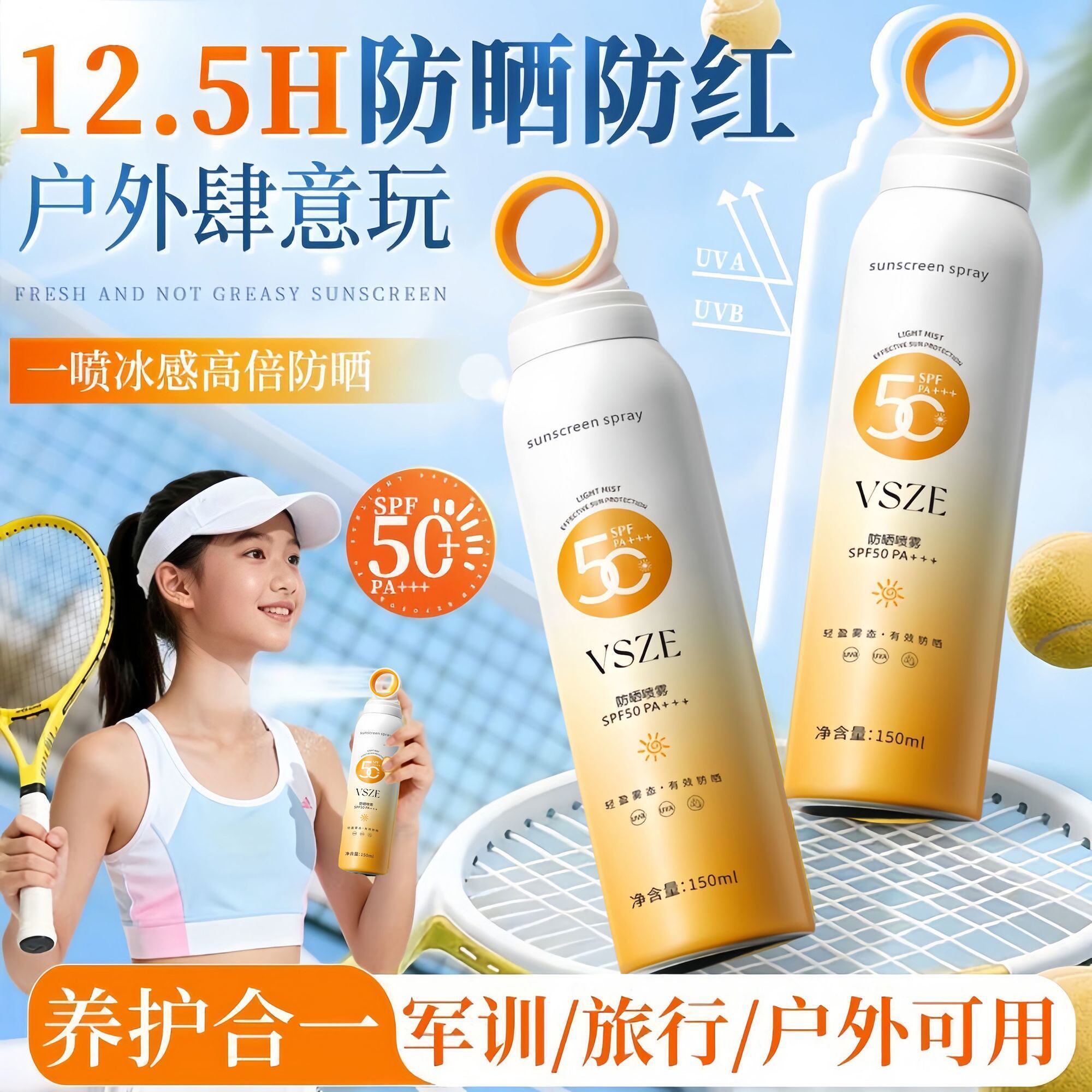 防晒霜50倍防紫外线身体美白隔离乳喷雾女男生军训正品 官方旗舰店