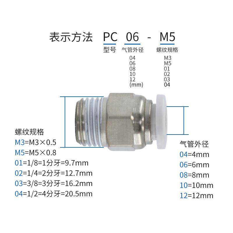 02直通PC4 M5PC6 03PC12 01PC10 亚德客型白色气管接头APC8