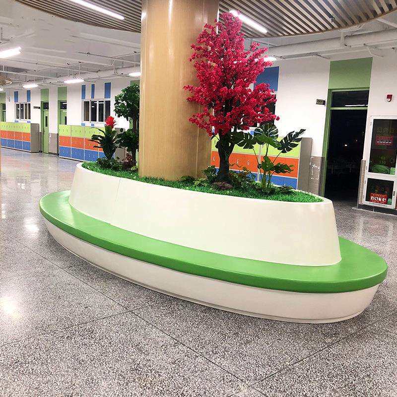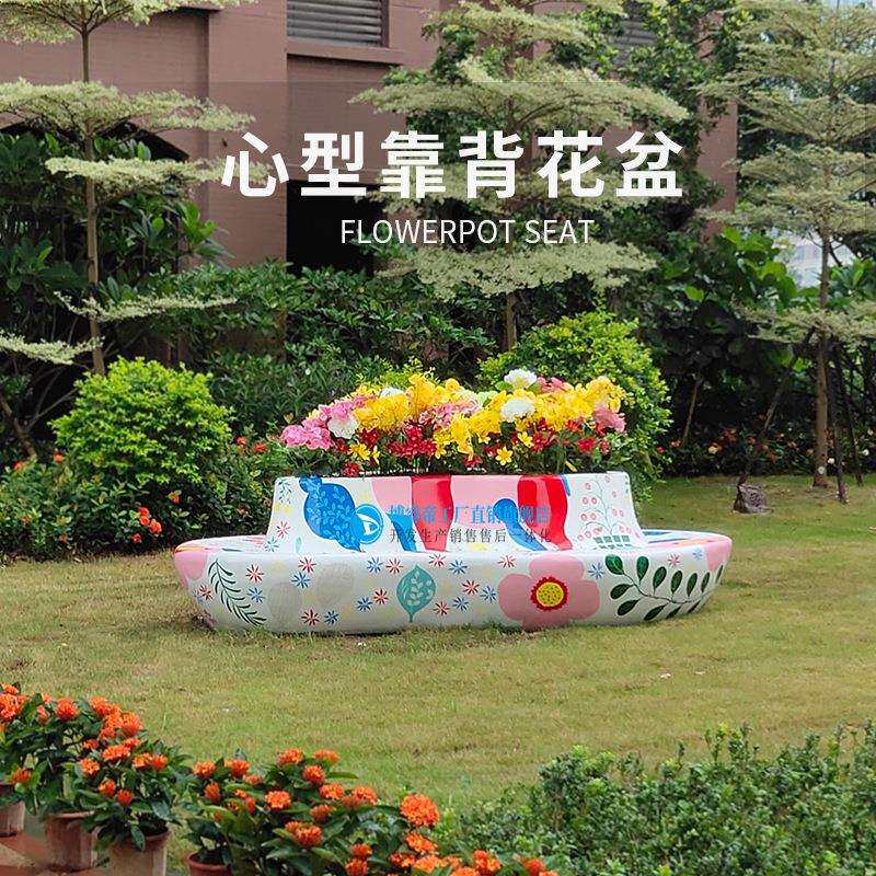 玻璃钢花盆座椅创意机场休息椅酒店彩绘靠背座椅景观长条座椅美陈