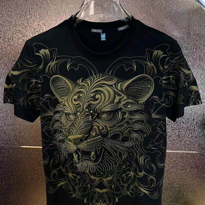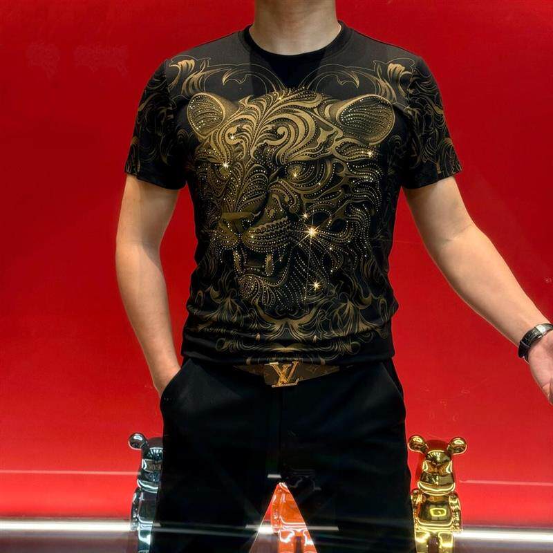 设计师男装 欧美简约T恤个性 2026虎虎生威烫钻短袖 绅度轩服饰LMVQ