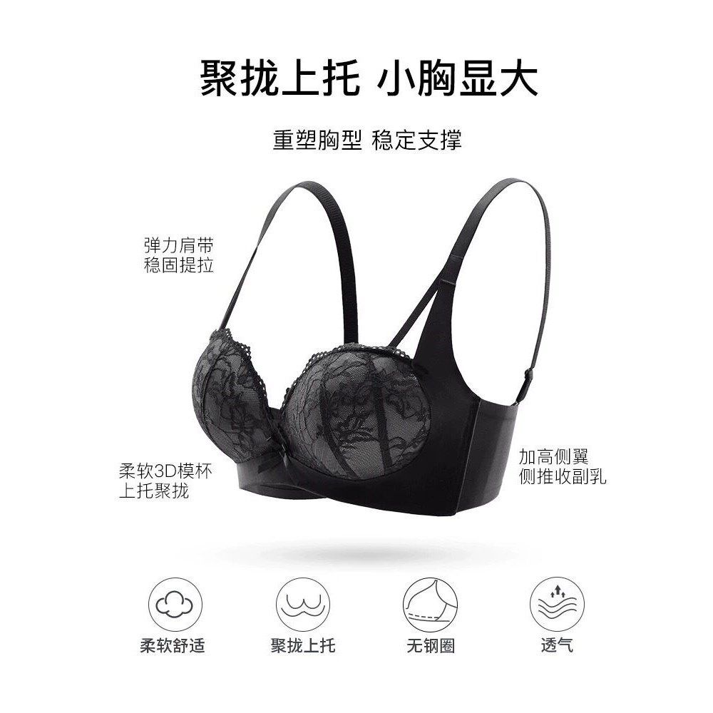 GULIBERRY内衣女小胸聚拢显大无钢圈上托收副乳蕾丝文胸罩套装