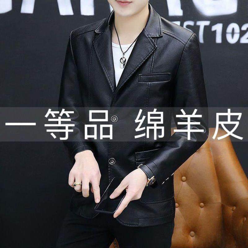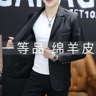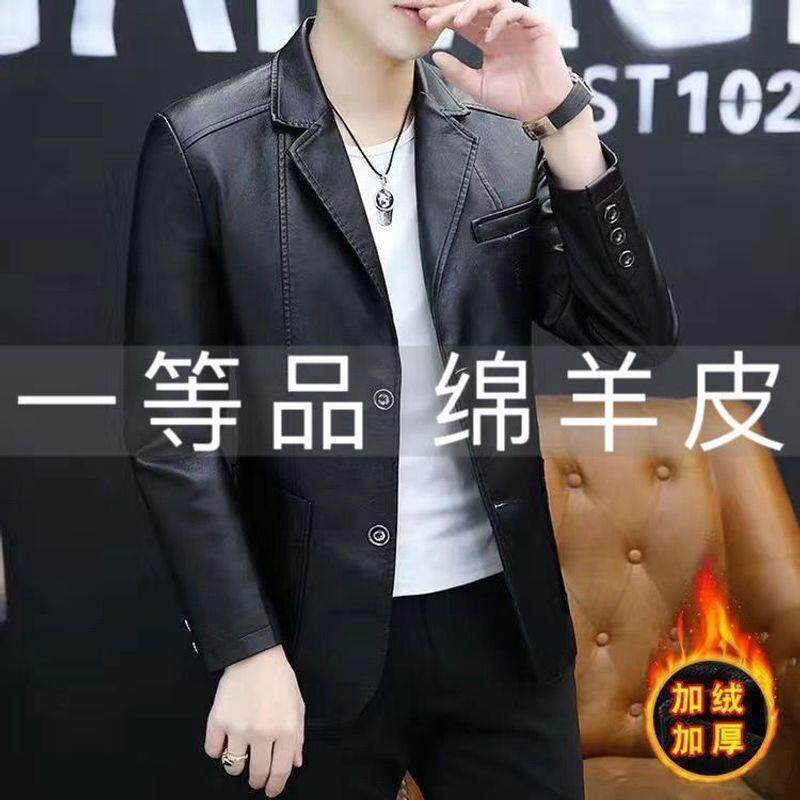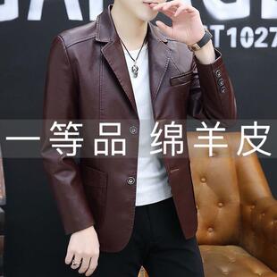 春秋商务休闲西装 海宁绵羊皮衣中老年男士 皮夹克外套 加绒保暖
