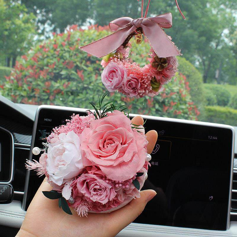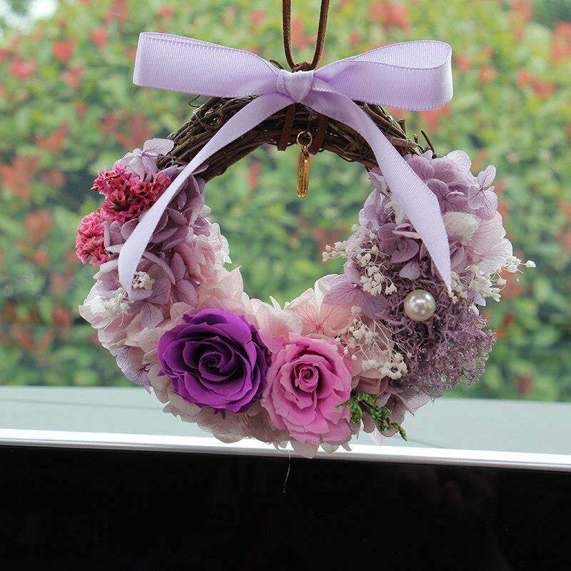 永生花玫瑰花环汽车挂件汽车内装 饰品摆件520生日礼物送闺蜜
