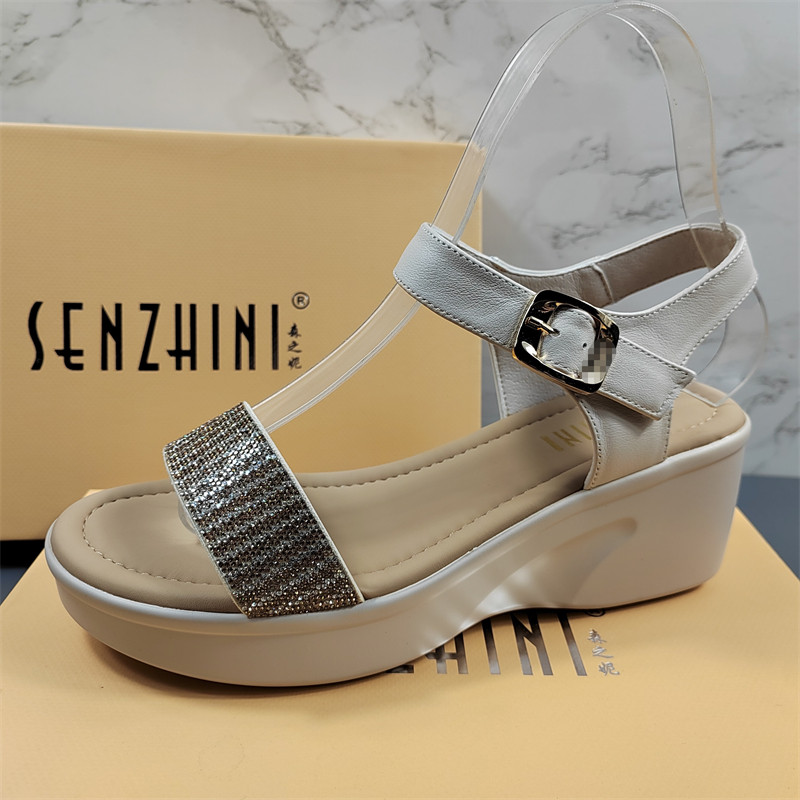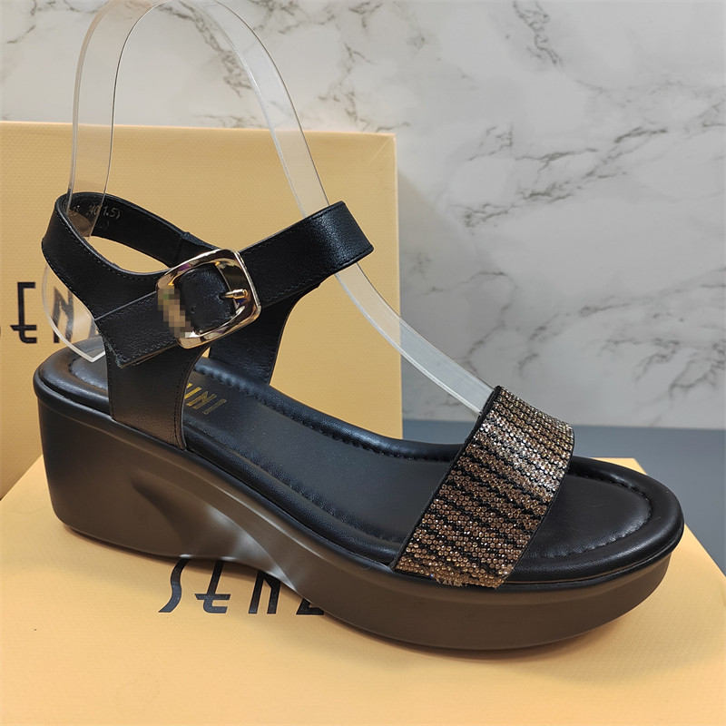 女士配裙子罗马厚底松糕凉鞋 头层牛皮坡跟凉鞋 时尚 夏季 女2026新款