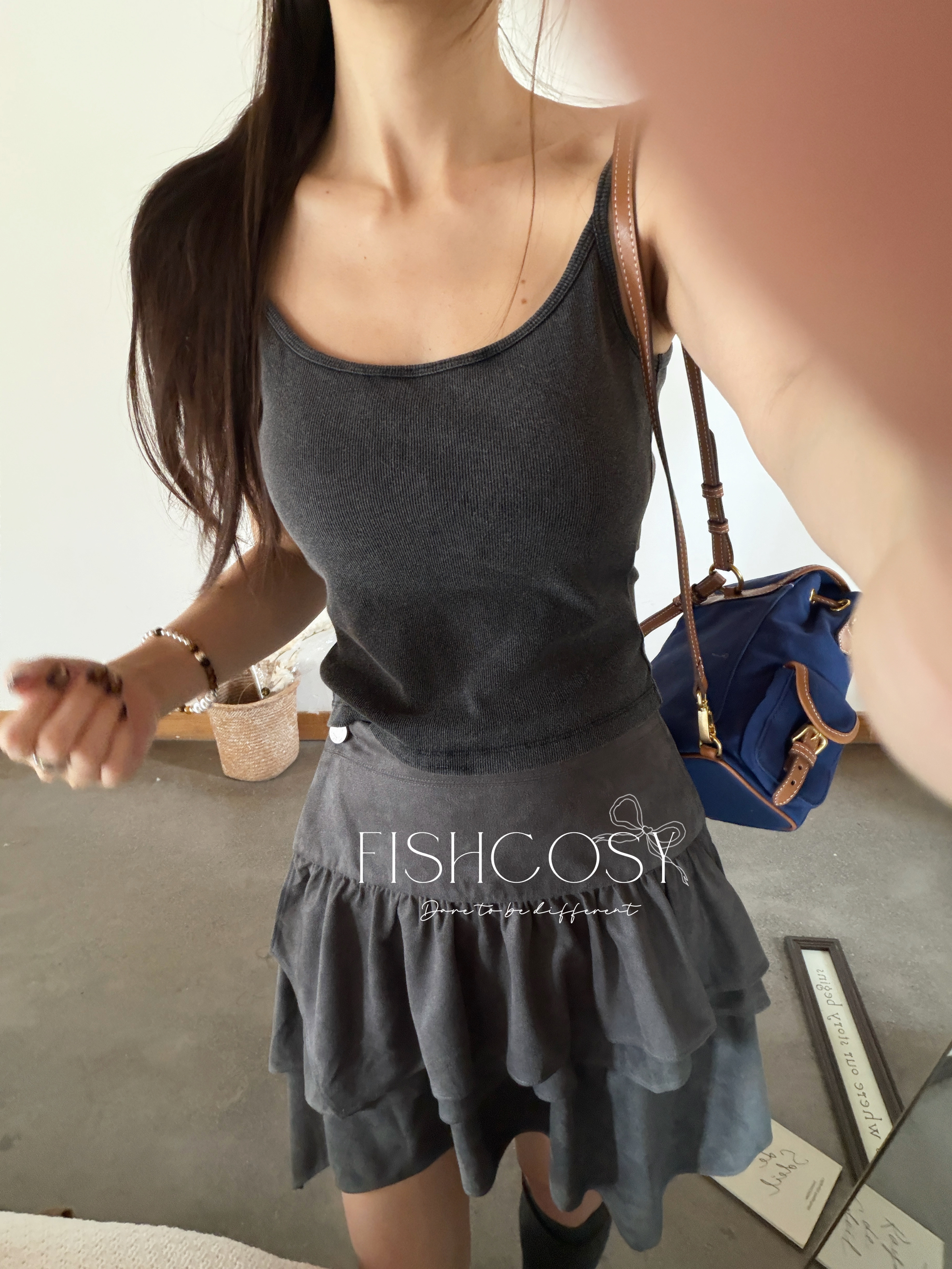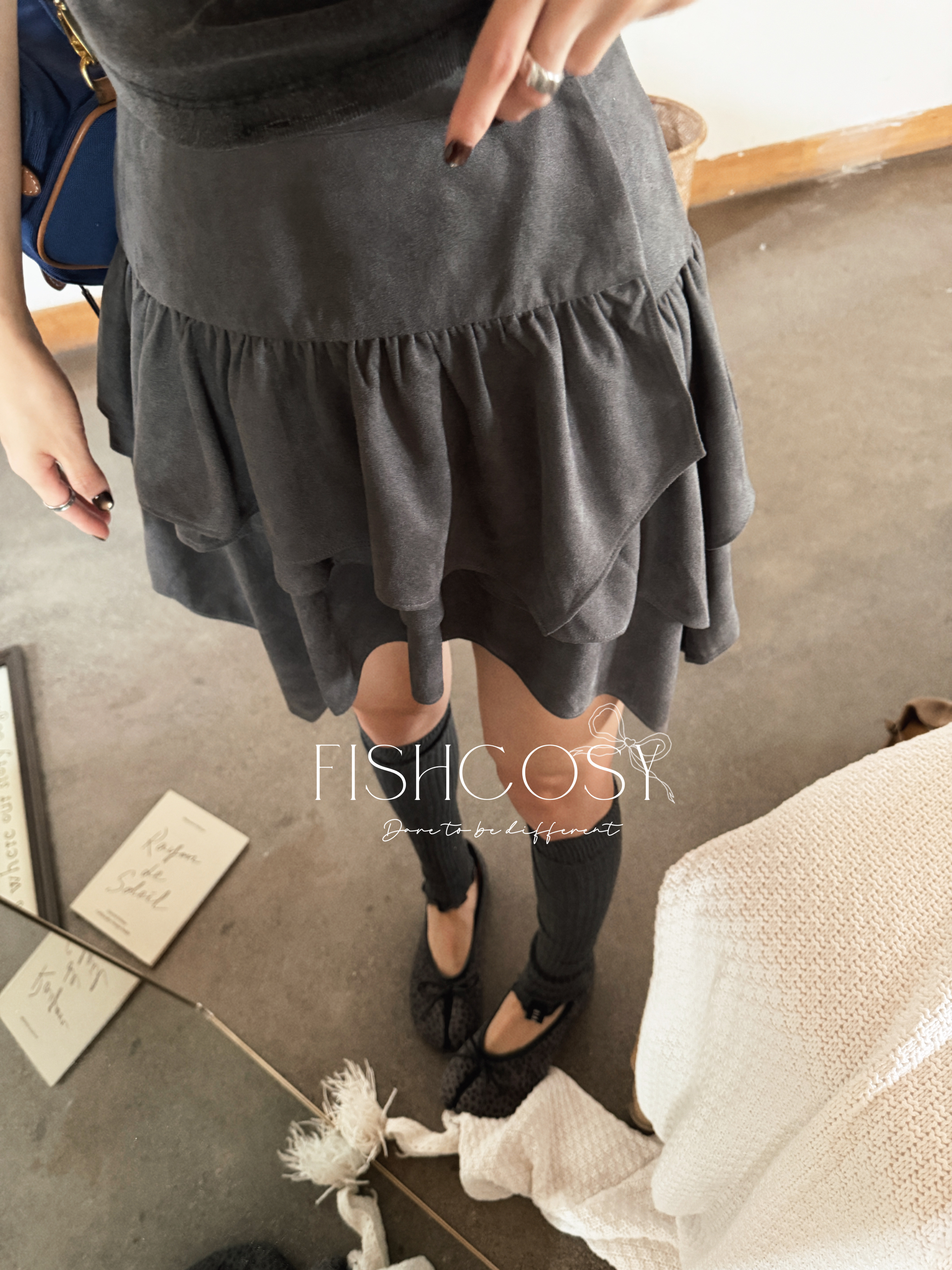 韩国现货 自带安全裤 麂皮短裙半身裙 fish 不规则裙摆