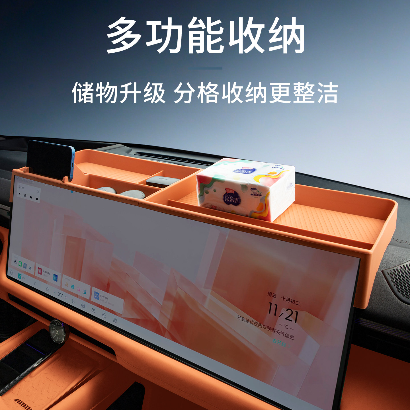 适用于领克900汽车屏幕后置物盒车载中控后ETC收纳盒车机后储物盒