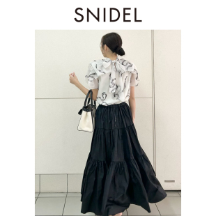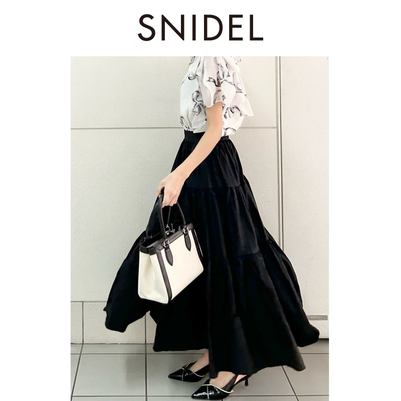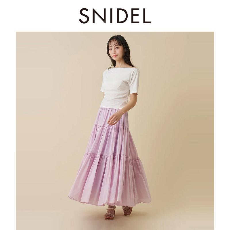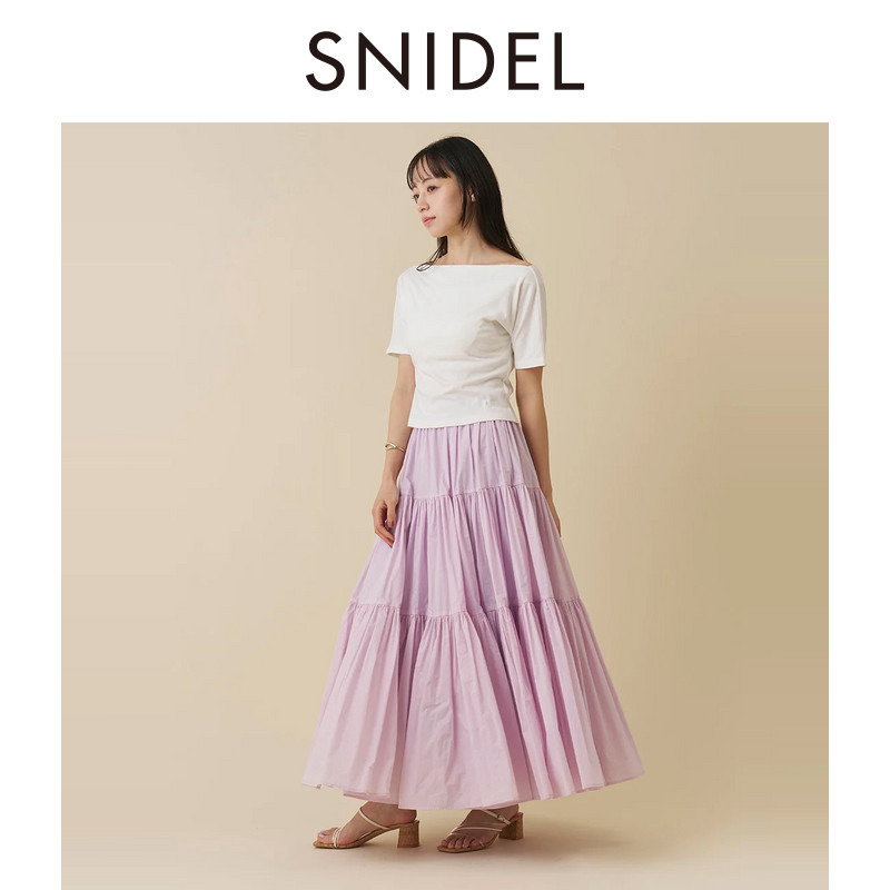 SNIDEL2026春夏新品 百搭纯色高腰压褶A字伞裙半身裙SWFS261239
