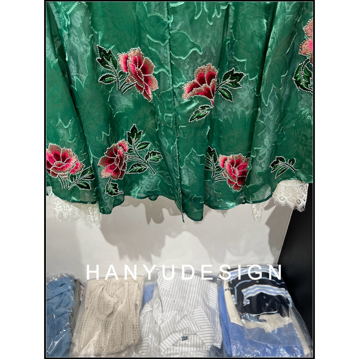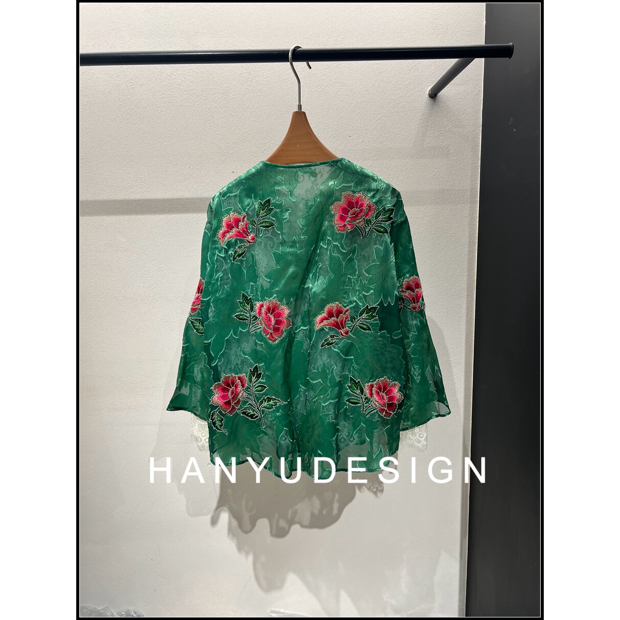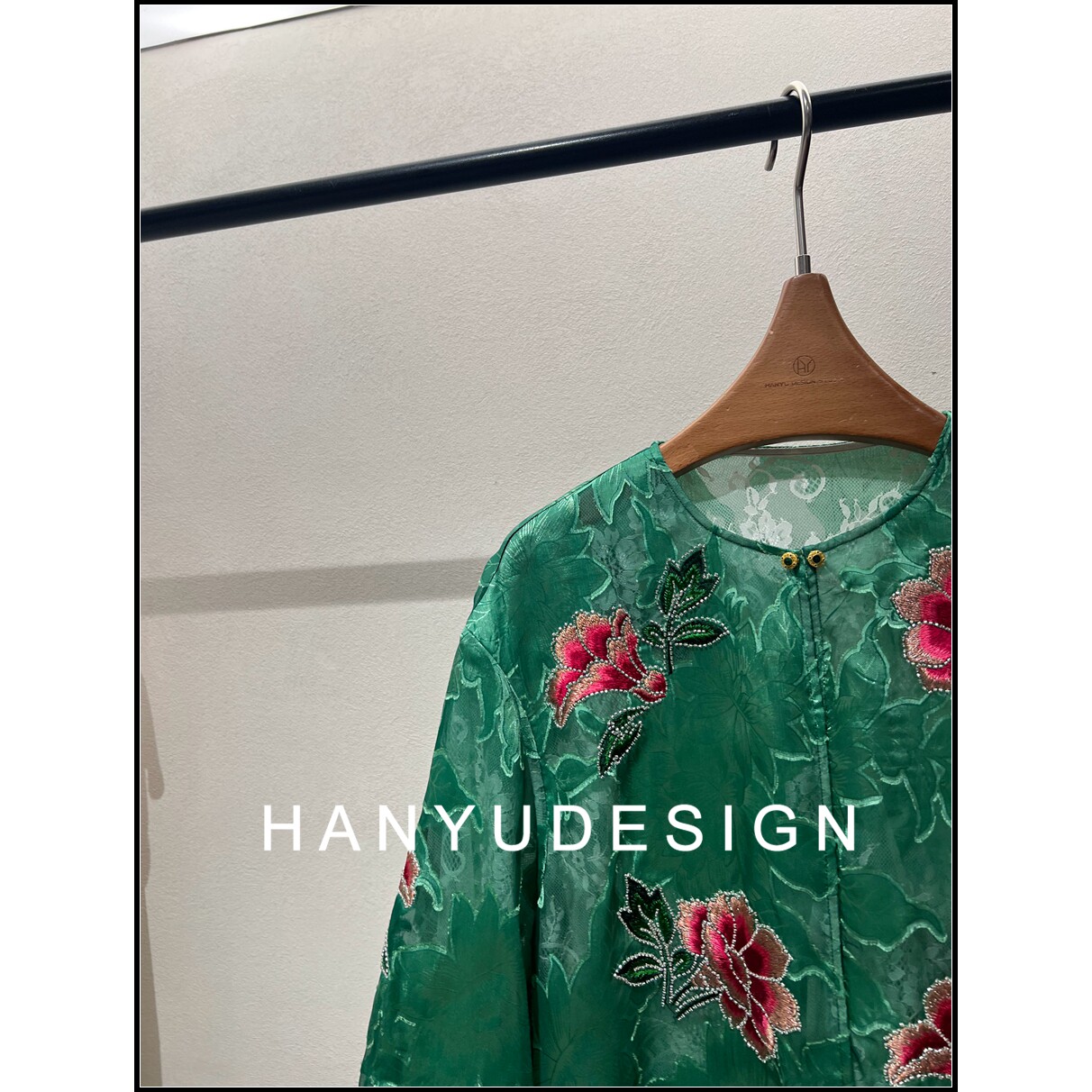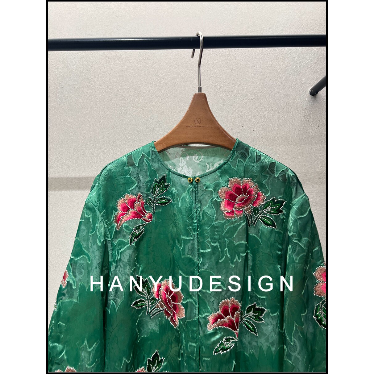 花卉印花衬衫 100%桑蚕丝绿色新中式 26早春新款 女 韩钰DESIGN