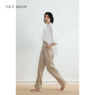 TKY 衣橱 SHOP系带直筒休闲裤 简约通勤长裤 子 显瘦裤 所有姐姐