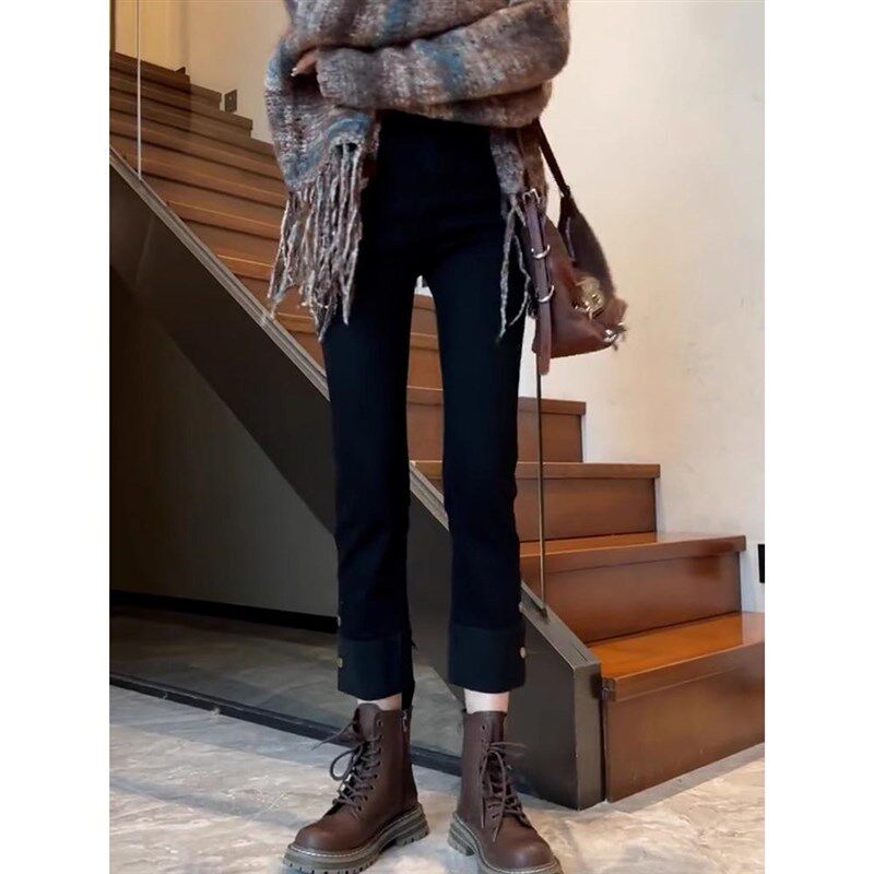 胖mm高腰烟管裤 女大码 子 梨形身材弹力九分直筒显瘦牛仔裤 秋冬新款