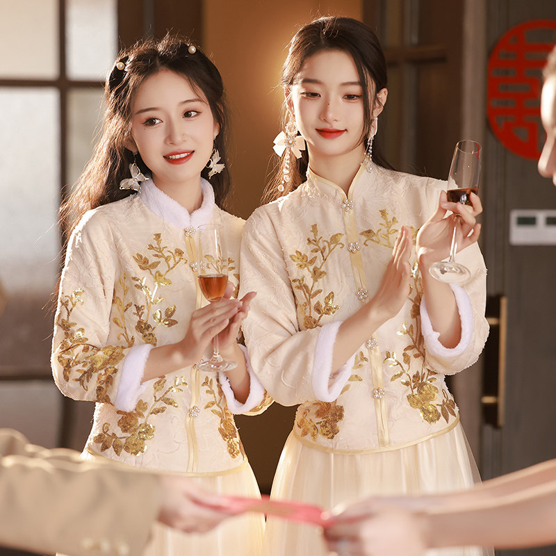 中式 姐妹团礼服小个子高级感旗袍秀禾汉服伴娘裙 伴娘服女婚礼新款