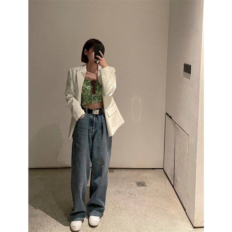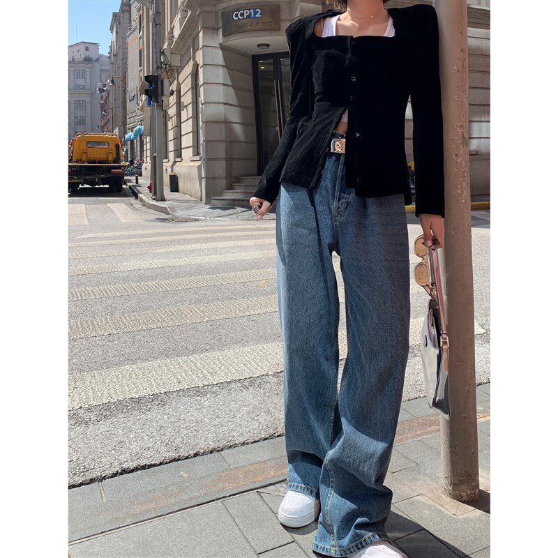 Lin 宽松裤 直筒牛仔裤 阔腿裤 子 女高腰显瘦春秋2021年新款 Xinlei