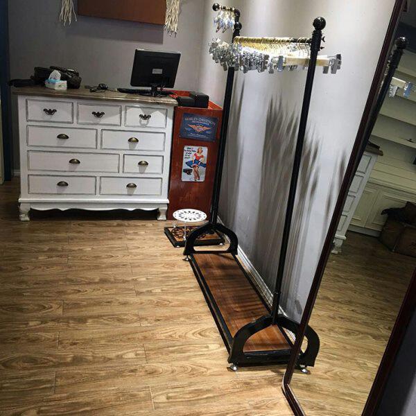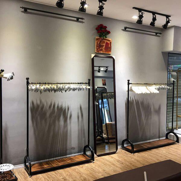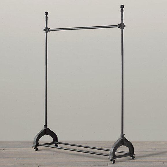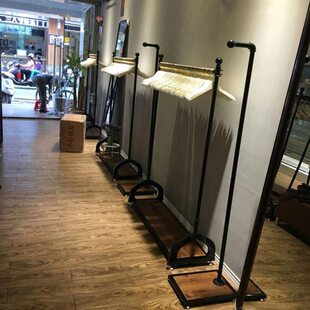 可移动挂衣杆铁艺复古龙门架 带轮水管衣架女装 服装 店展示架落地式