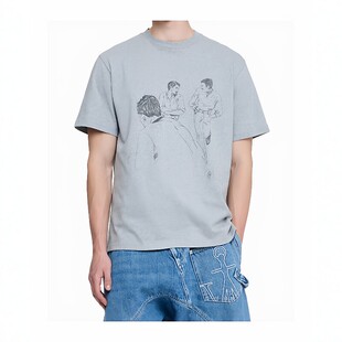 银泰百货 J.W. T恤 圆领T恤纯色线描画短袖 301574 Anderson男士