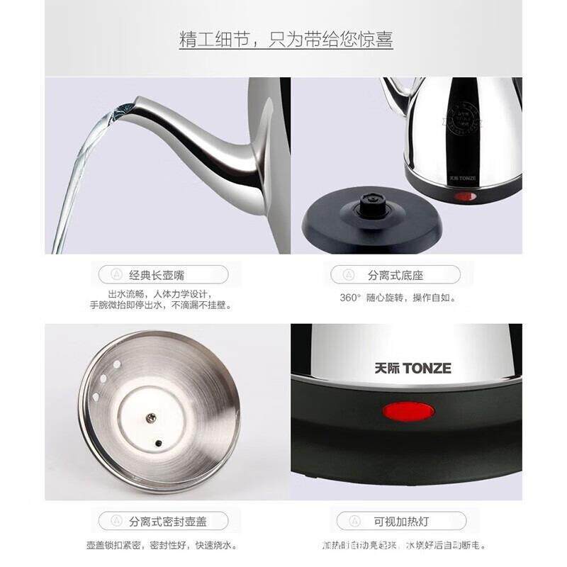 天际电热水壶煮水长嘴自动断电水壶家用烧水开水壶304不锈钢泡茶
