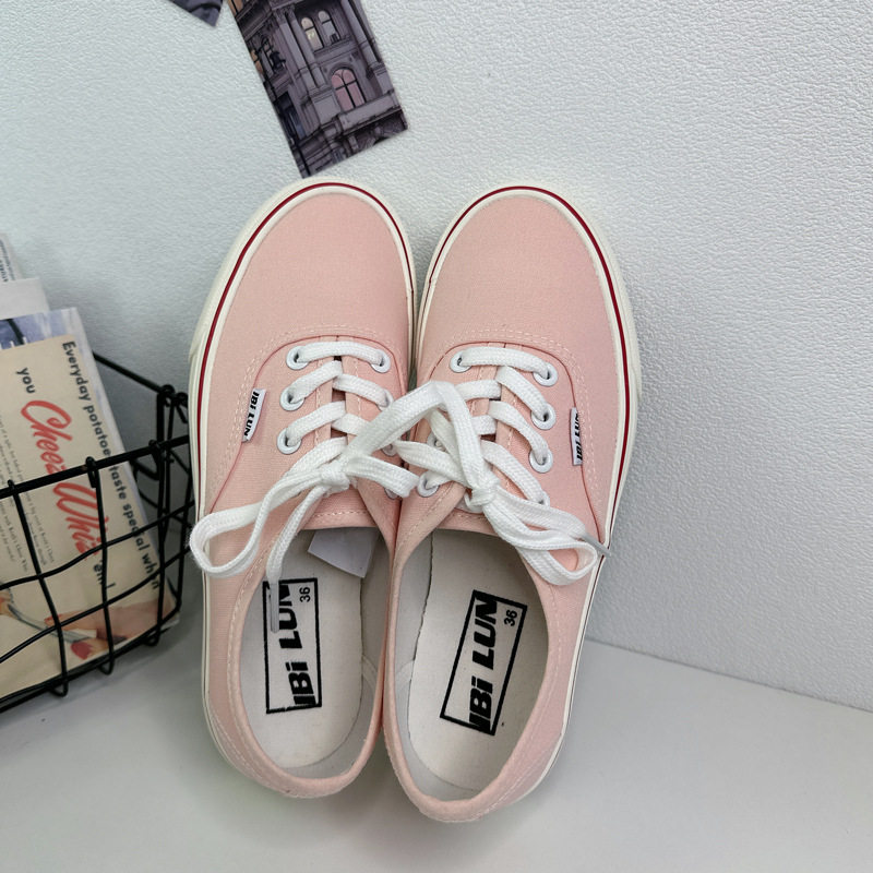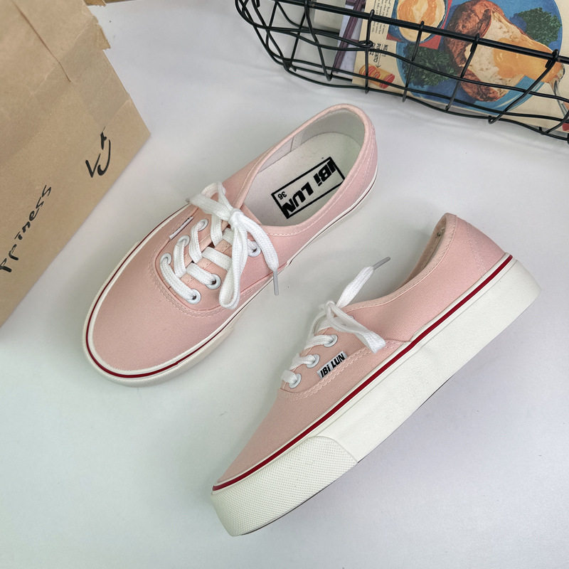 粉红色百搭系带潮流休闲滑板鞋 春季 女学生ins韩版 低帮帆布鞋 新款