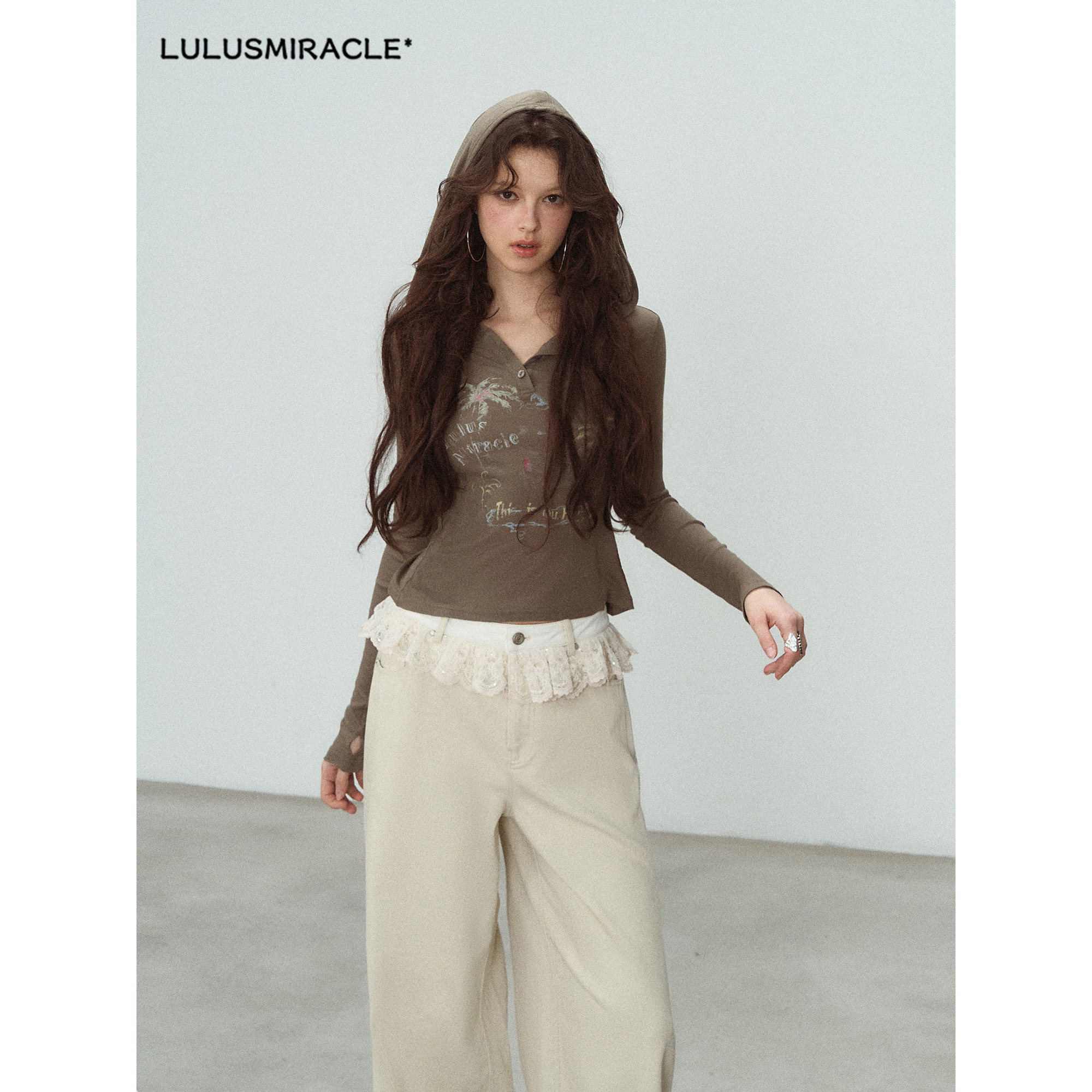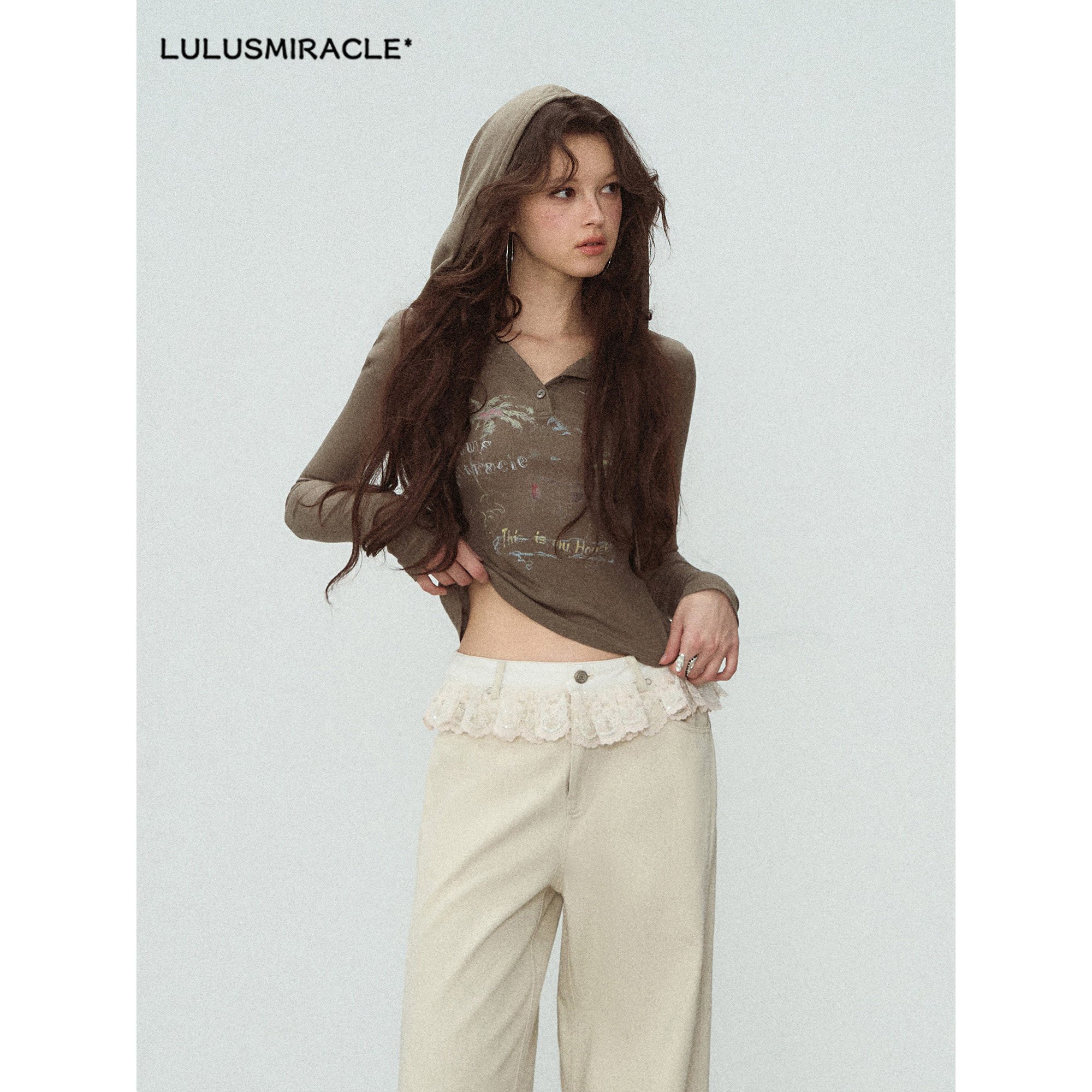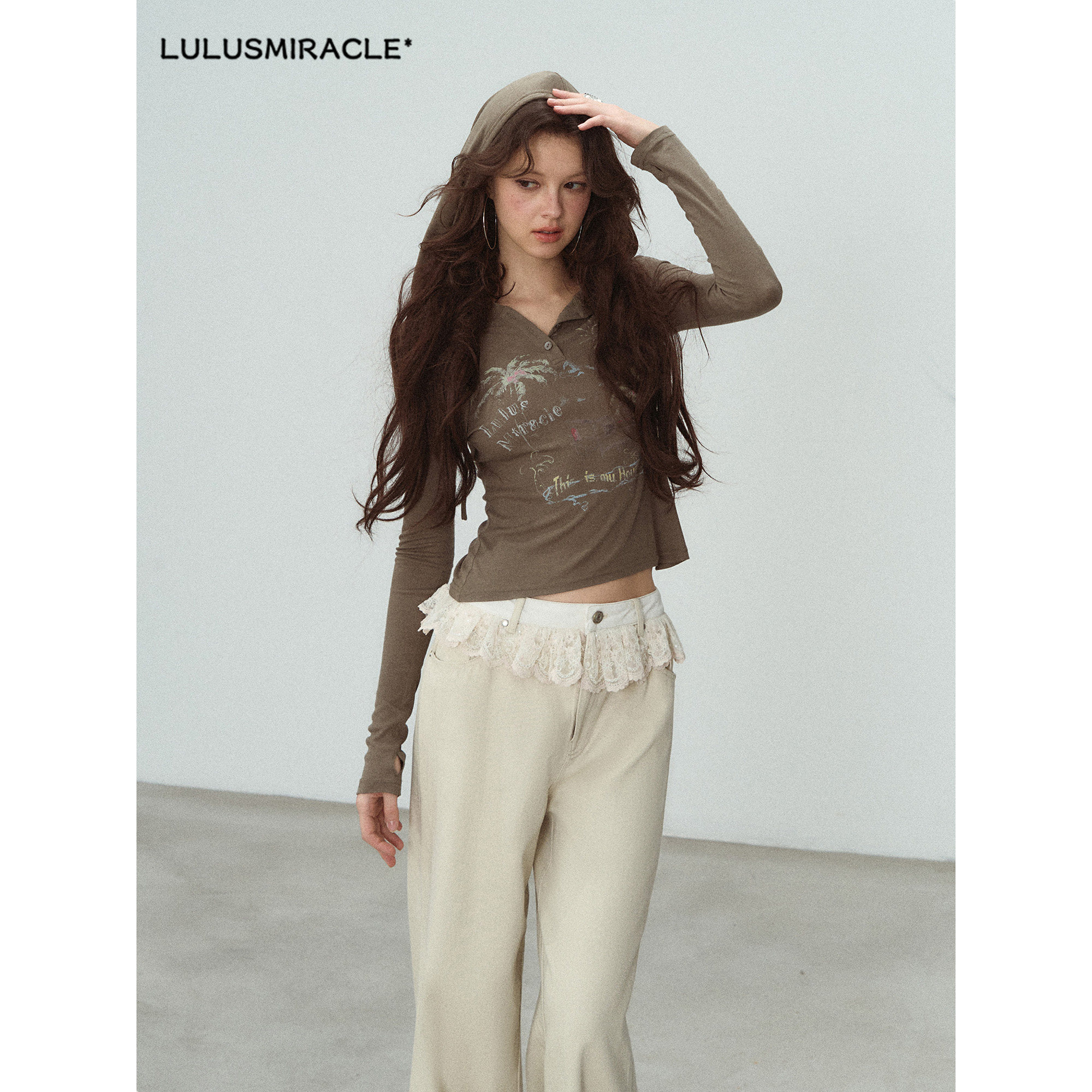 T恤修身 LulusMiracle 复古连帽长袖 美式 辣妹印花上衣 醒时春山