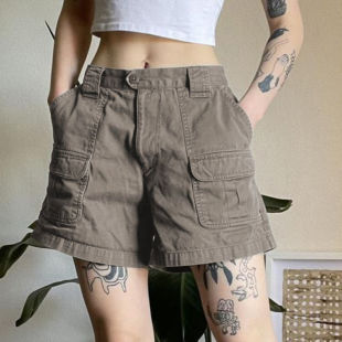 女新款 复古牛仔短裤 水洗口袋直筒工装 短裤 Last 五分裤 danse美式