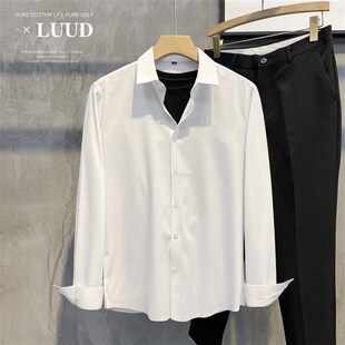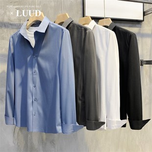 商务职业寸衣免烫抗皱长袖 英伦风男士 衬衣 无痕工艺压边衬衫 LUUD