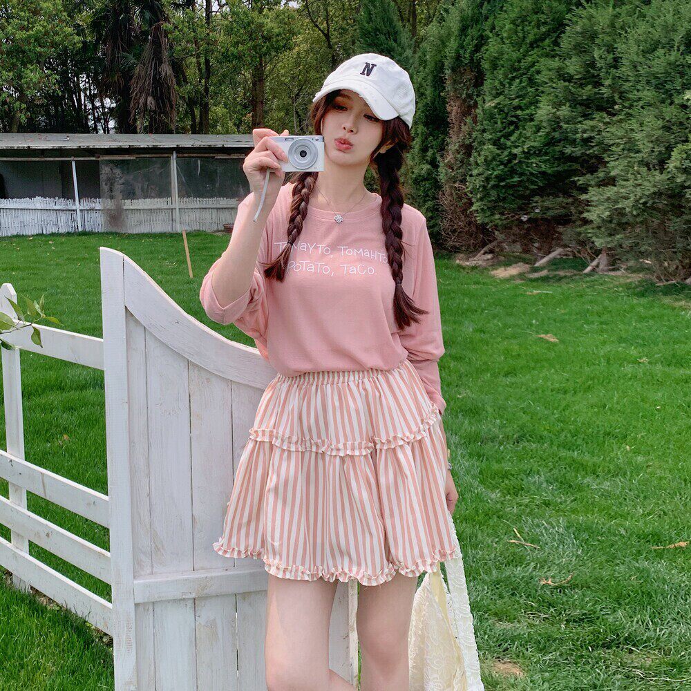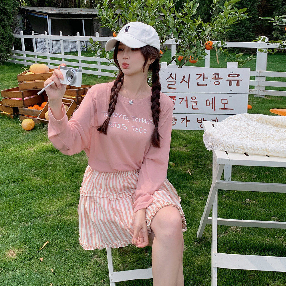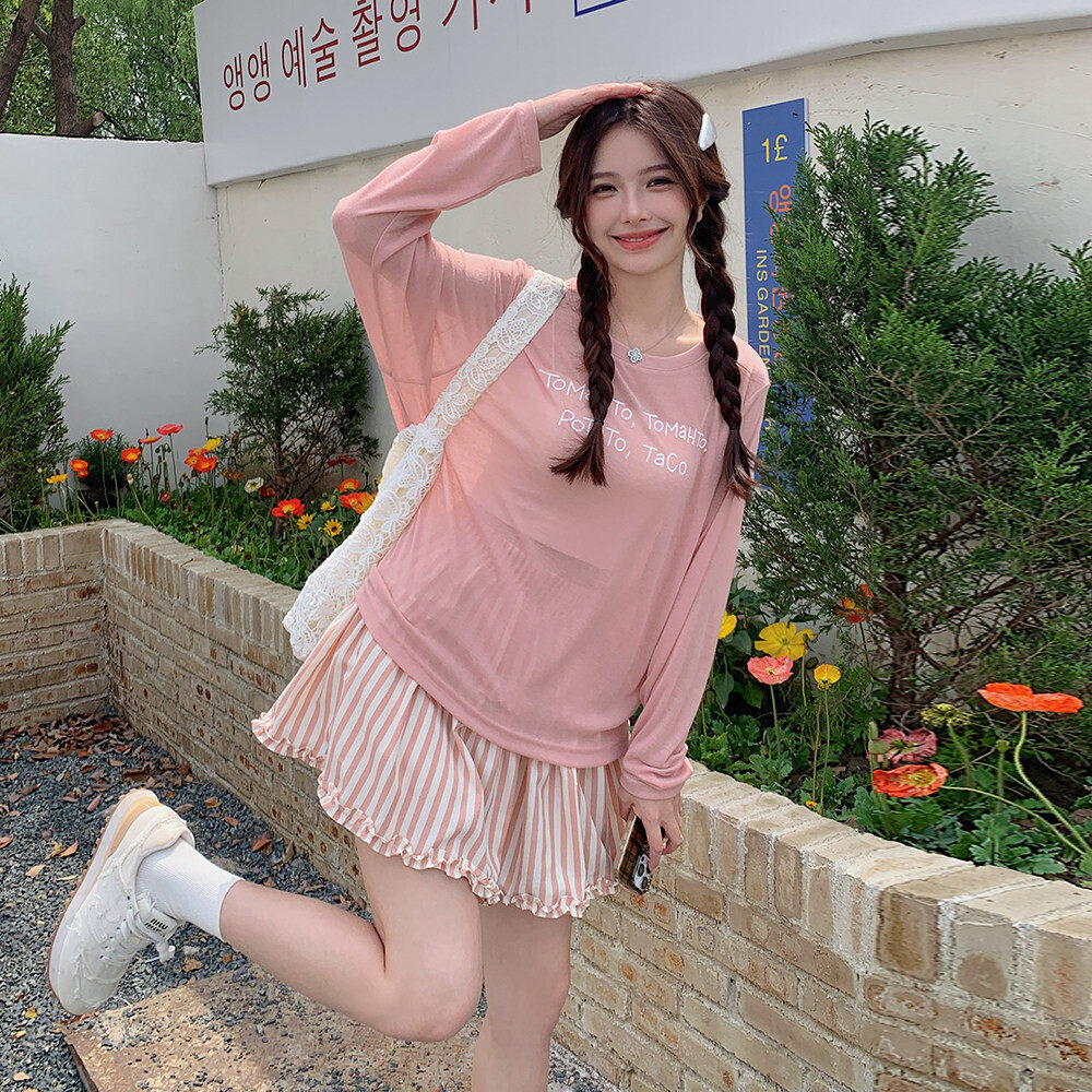 2C135 字母印花上衣条纹短裙两件套装 8815P135K208 新款 现货:夏装