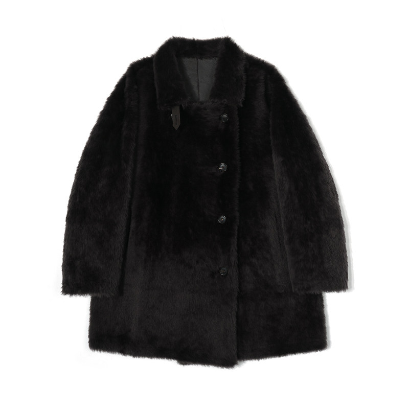 皮毛一体外套 翻领纽扣款 拉贡两面穿中长款 52200 邢康莉甄选