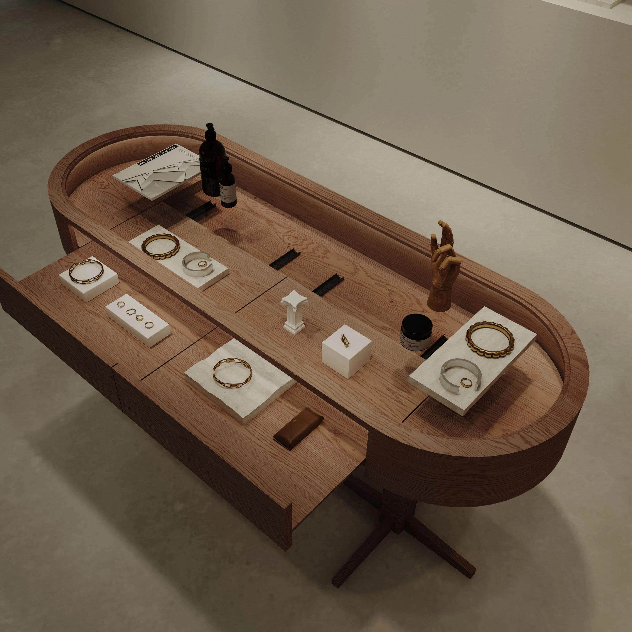 店陈列柜中岛桌流水台 饰品柜女装 服装 店中岛台展示桌储物柜商场装
