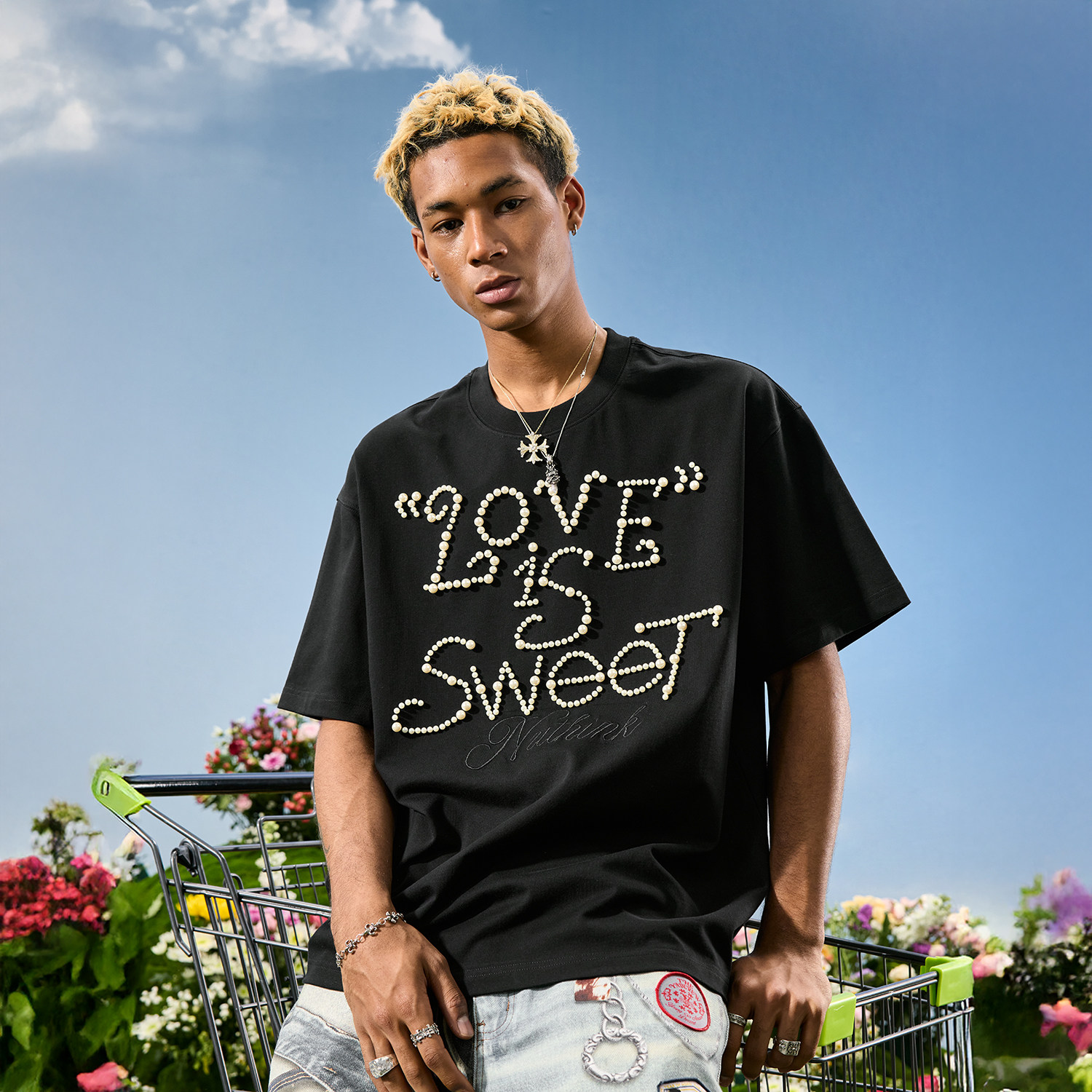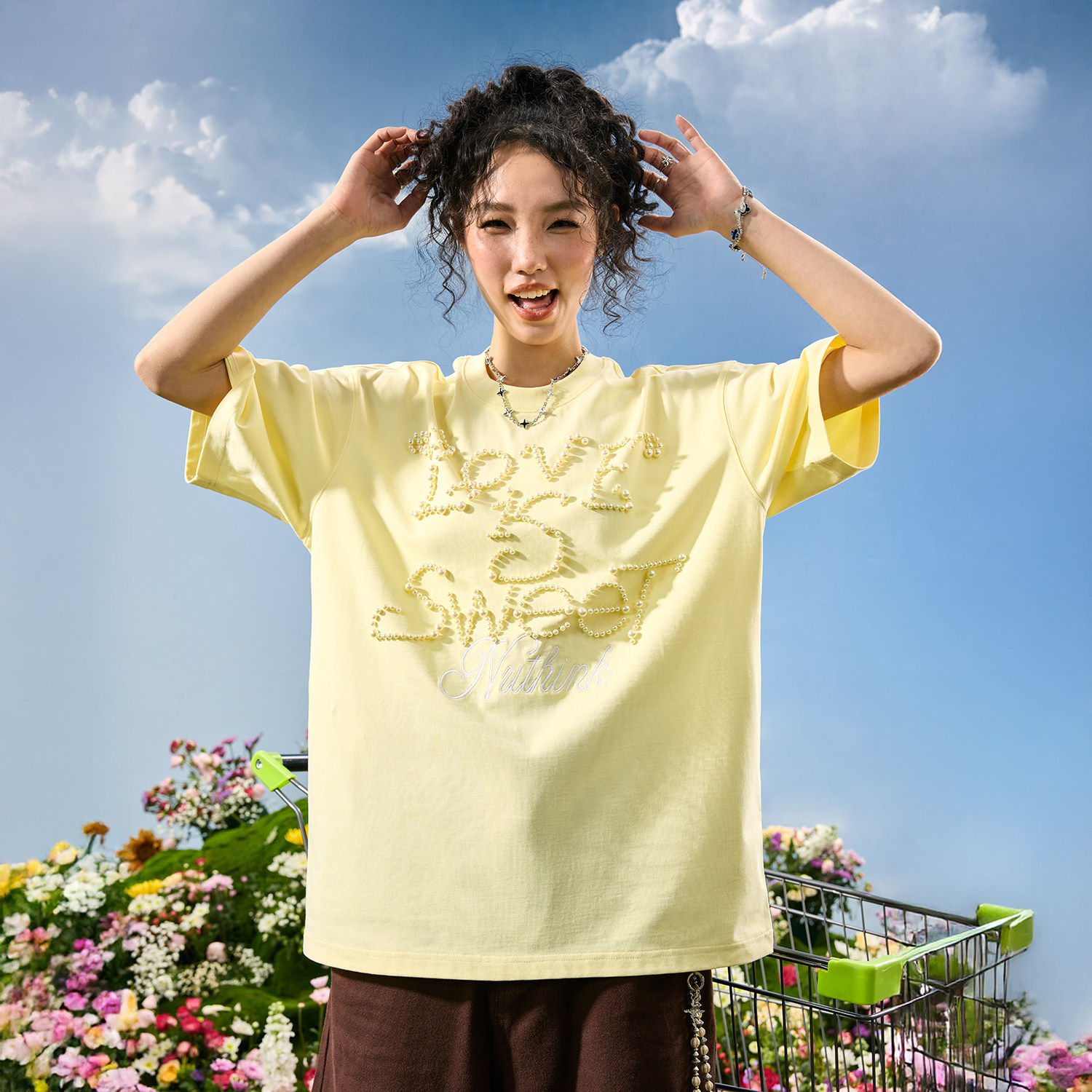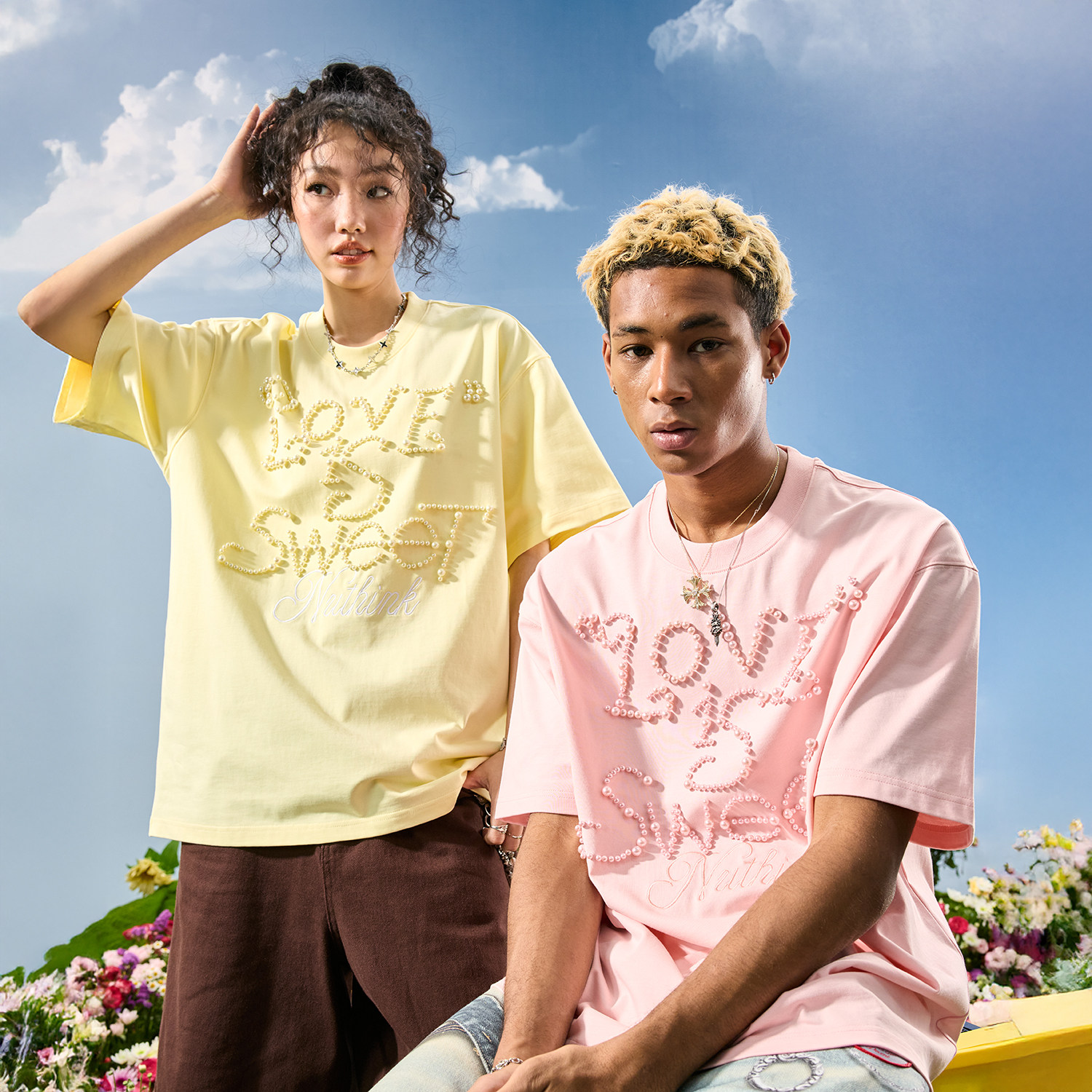 T恤潮牌多巴胺男女情侣宽松2026年夏新款 Nuthink美式 潮牌珍珠短袖