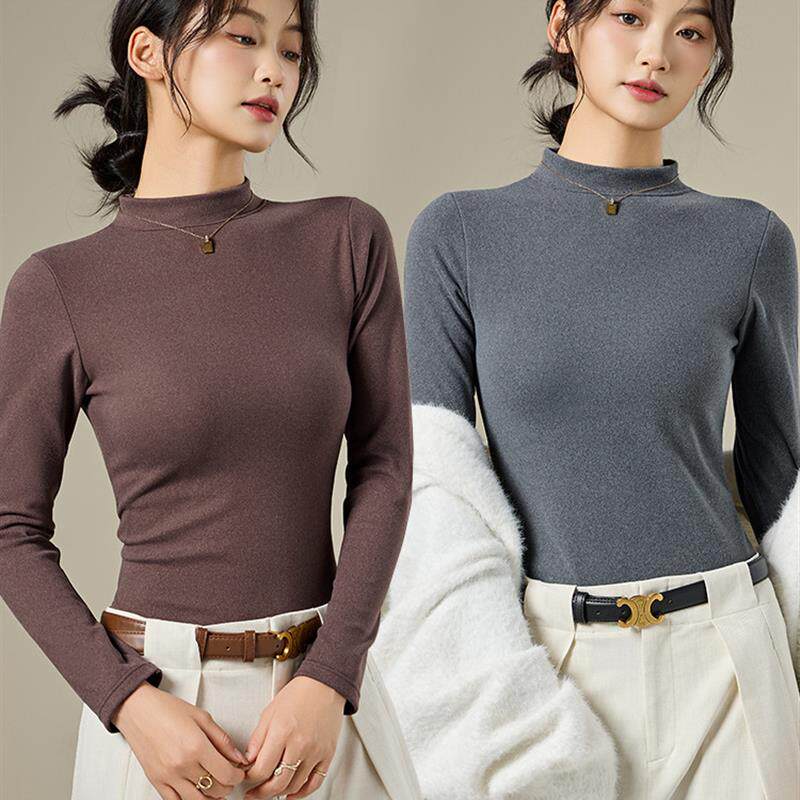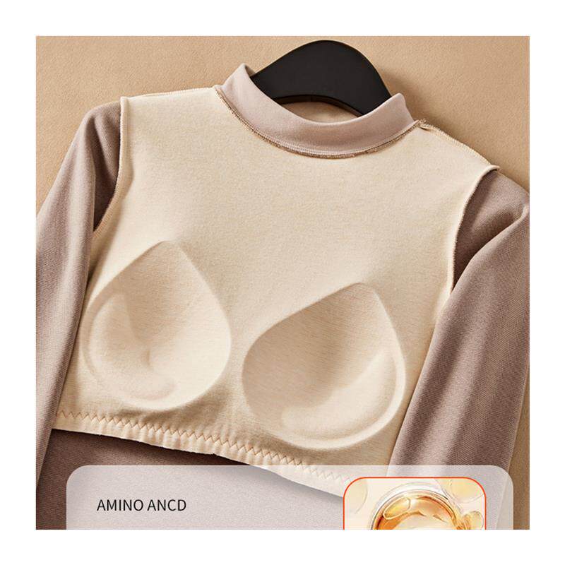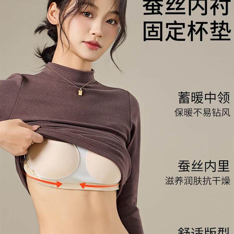 半高领石墨烯加热保暖贴身女士羊毛衬里加厚胸垫所有 长 一件衬衫