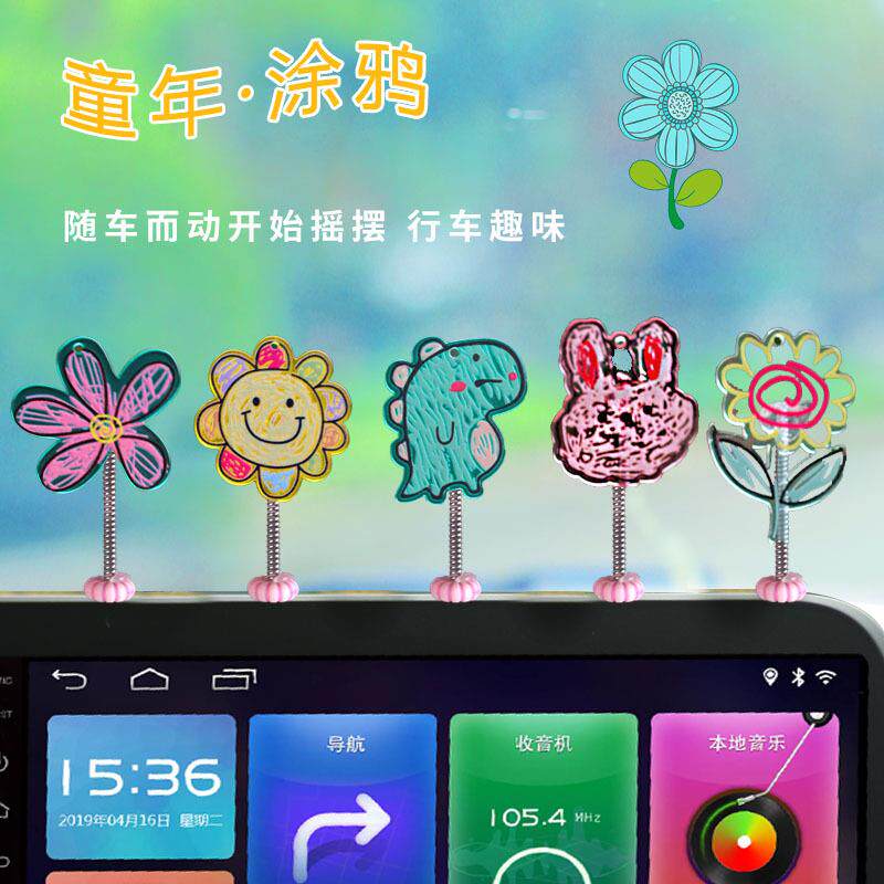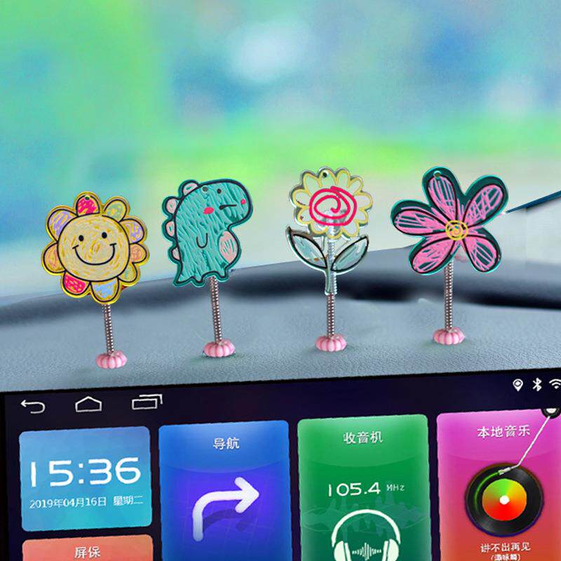 新款 饰品可爱摇头太阳花网红 直销创意涂鸦卡通恐龙车载摆件车内装