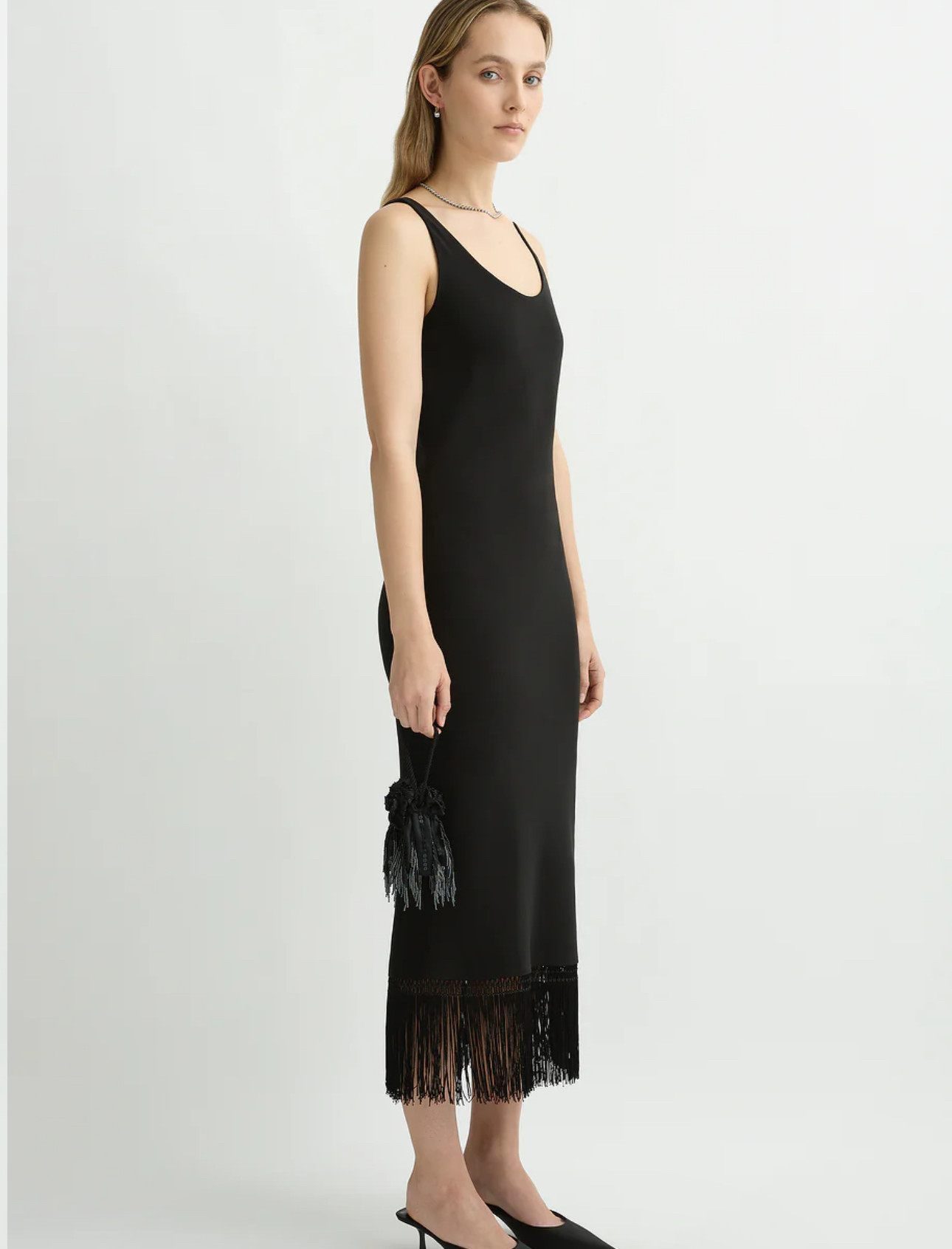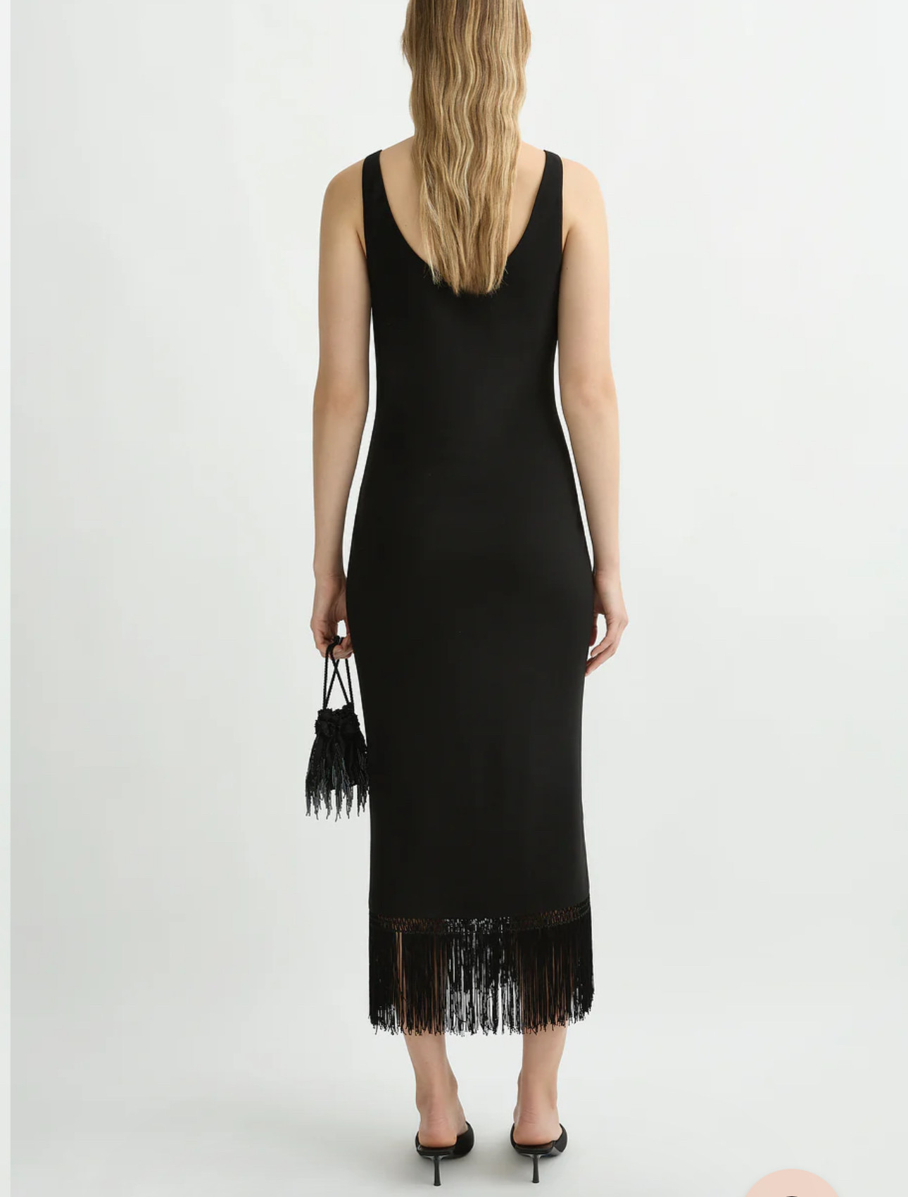 长裙礼服裙 背心无袖 美国购买黑色流苏装 饰下摆流苏