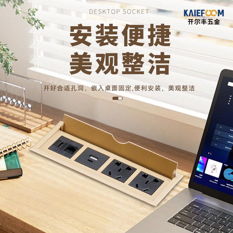 隐形插座插板办公室隐藏式 桌面嵌入式 插座台面滑盖无线插排嵌入式
