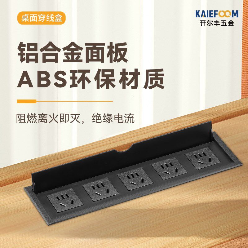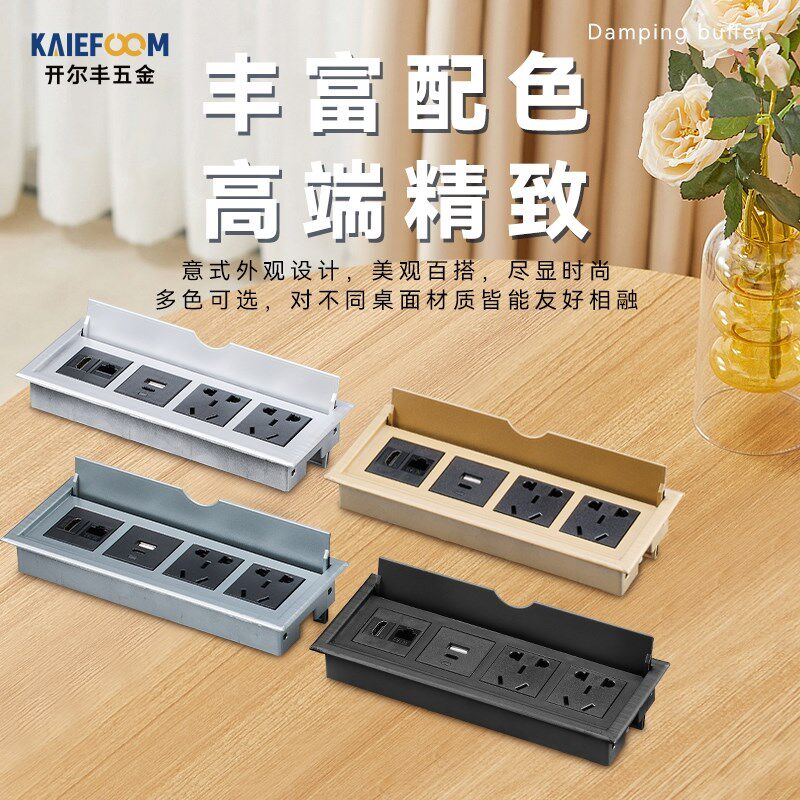 嵌入式 双侧滑盖桌面插座带开关办公室会议桌五孔USB插座无线充电