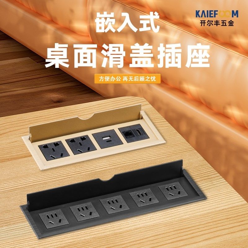 滑轨插线板 排插内嵌式 岛台桌面嵌入式 插座办公室书桌台面侧滑盖式