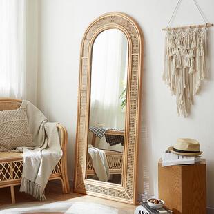 覆古全身镜全身镜衣帽间落地网红全身镜女生卧室藤编女装 店镜子