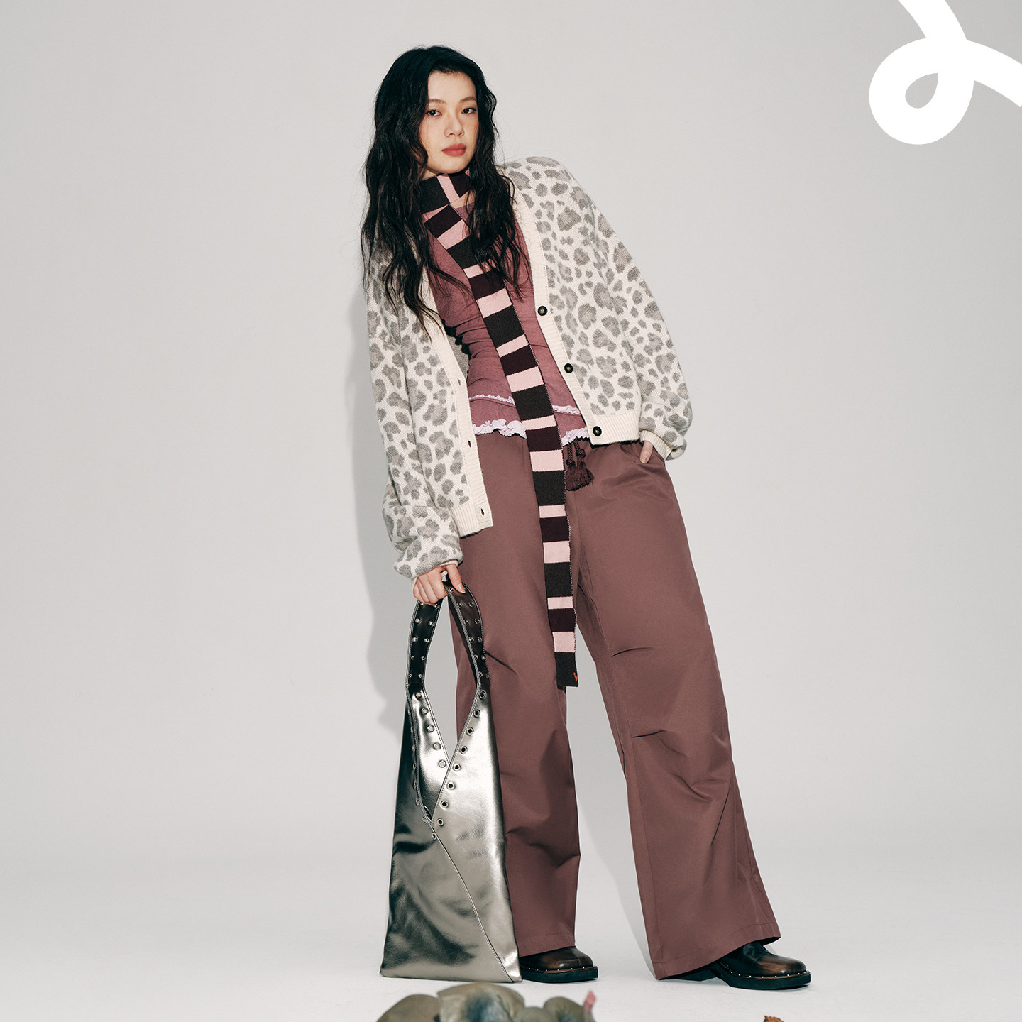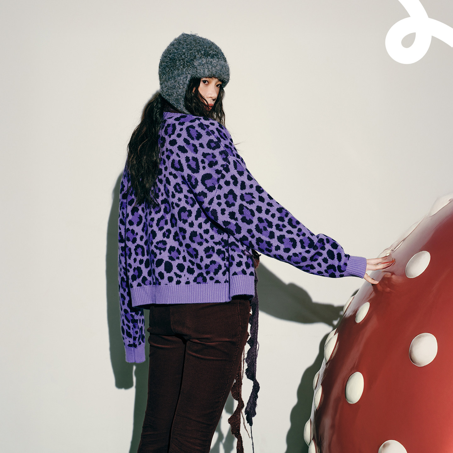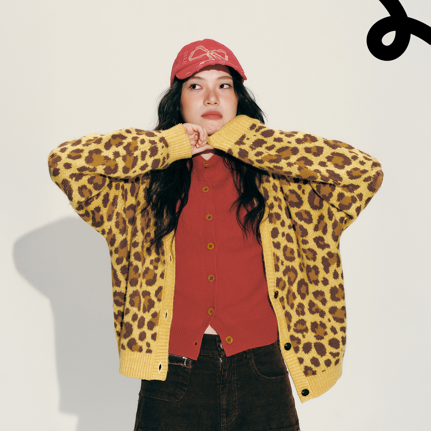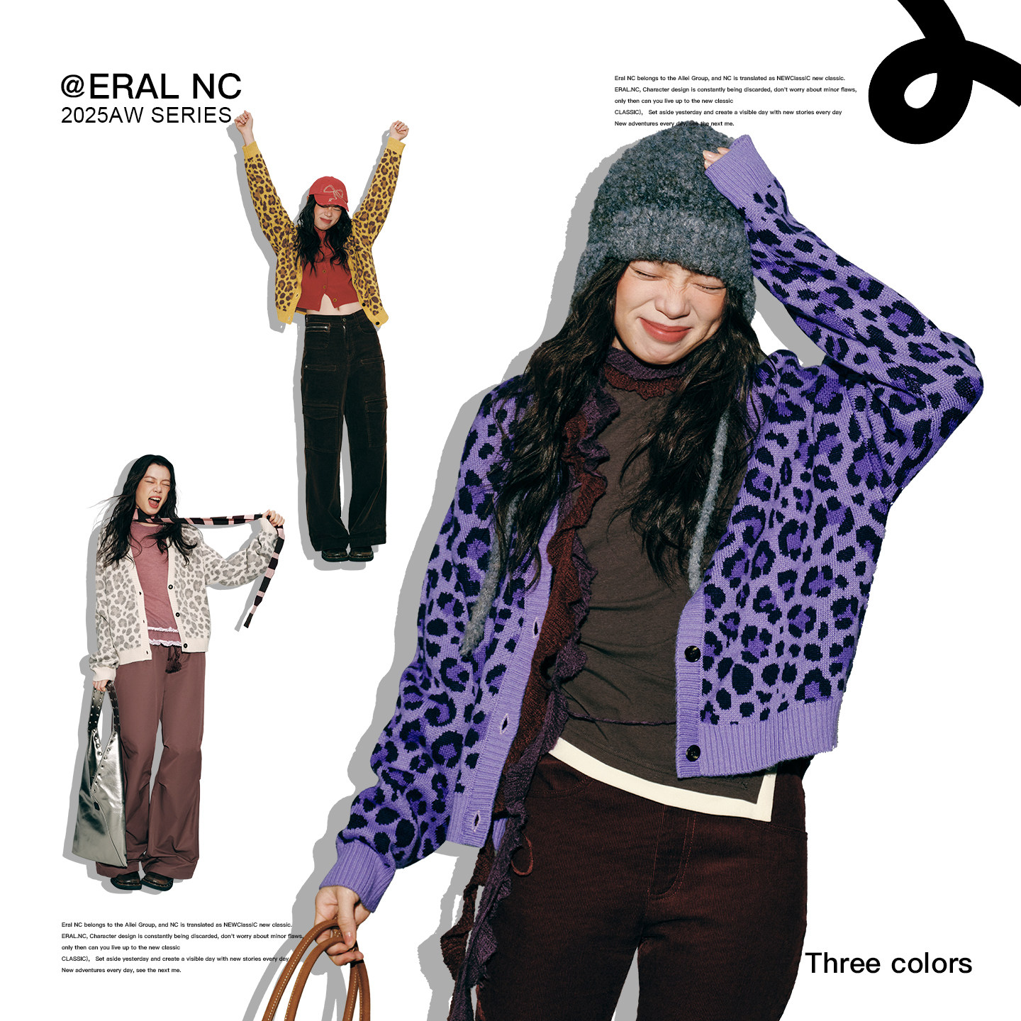 毛衣 女生加厚宽松时尚 eral nc星迹002都市通勤豹纹斑点V领开衫
