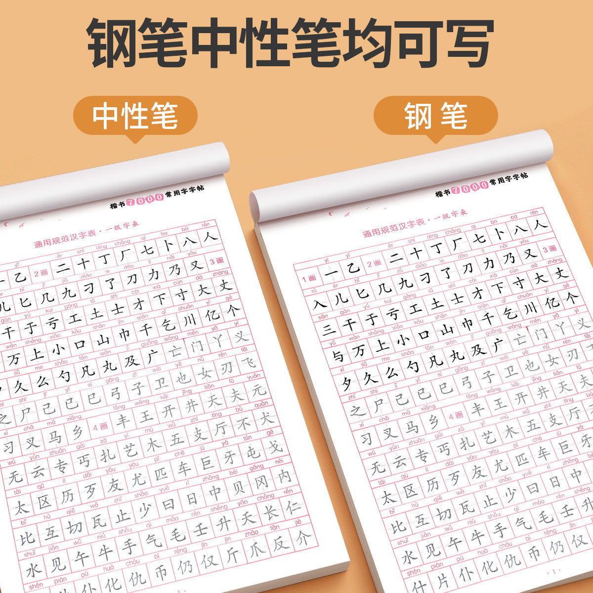 楷书成人练字帖7000常用字行楷练字帖零基础速成硬笔钢笔书法临摹成年人初高中大学生专用入门楷体正楷控笔训练笔画笔顺练字帖本
