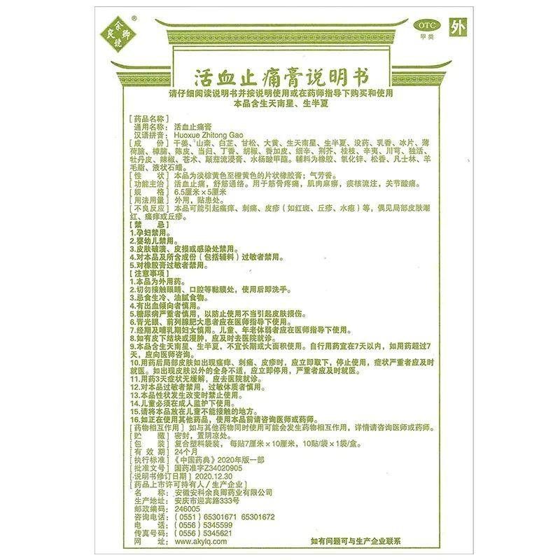 盒正品 10贴 阿里健康大药房现货速发 10cm 余良卿号活血止痛膏7cm