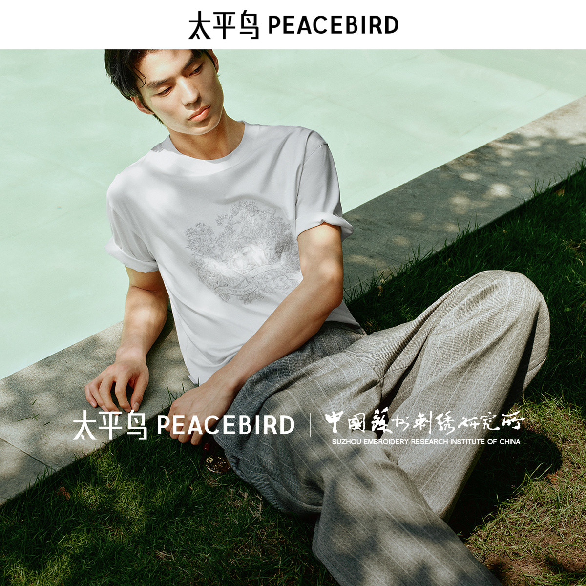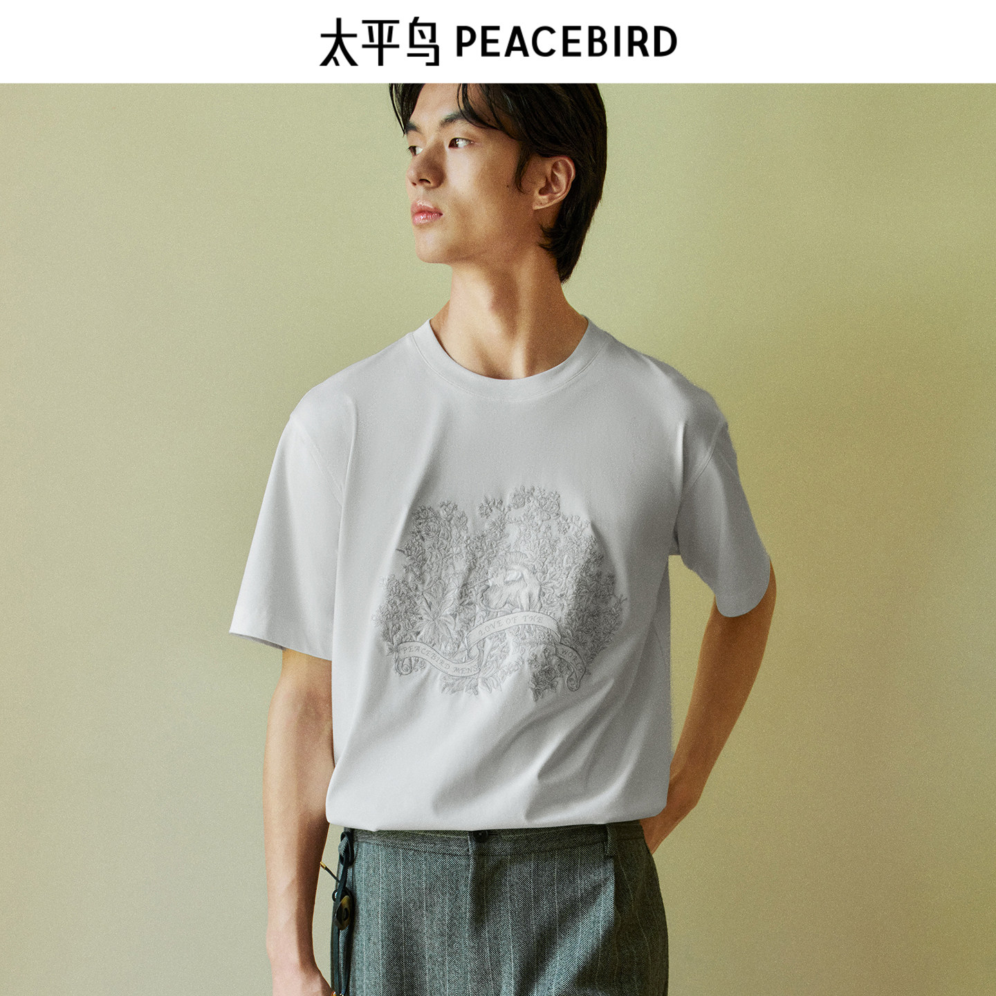 T恤25秋季 太平鸟男装 新款 重磅宽松短袖 B1CNF3121 潮 苏绣联名