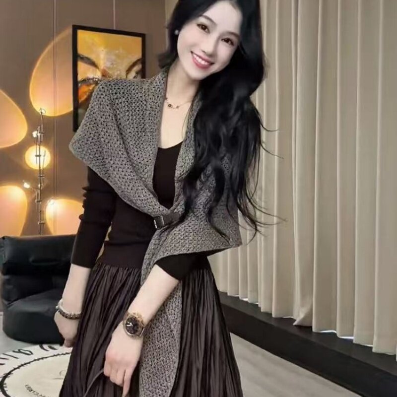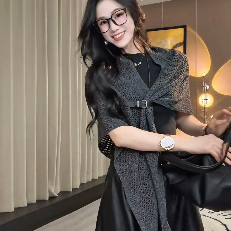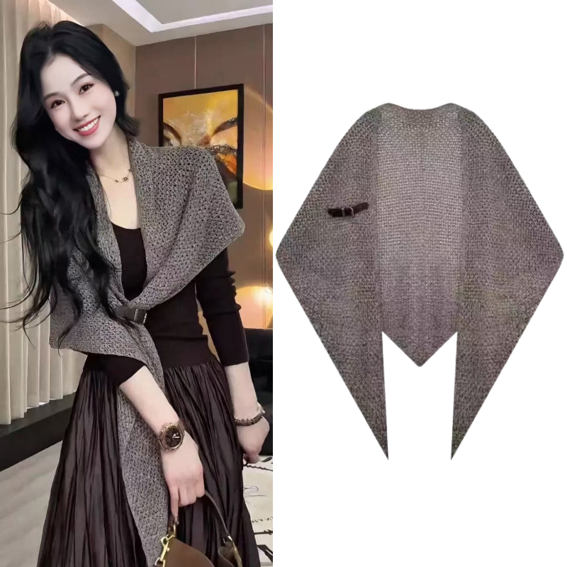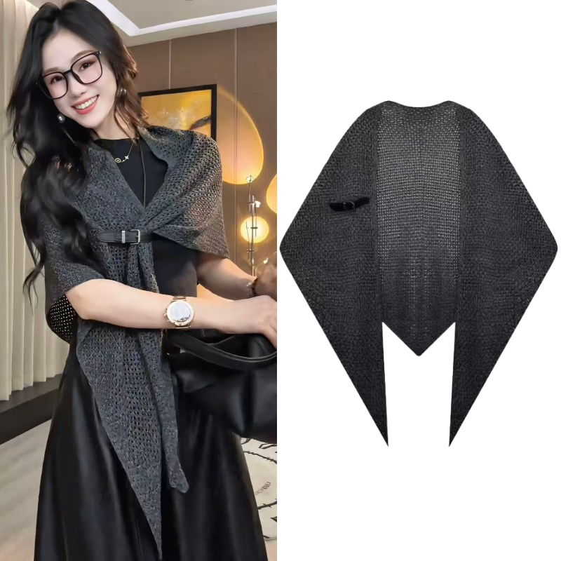 秋冬新款 气质镂空围巾 三角披肩羊毛混纺流行保暖高级感独特时尚