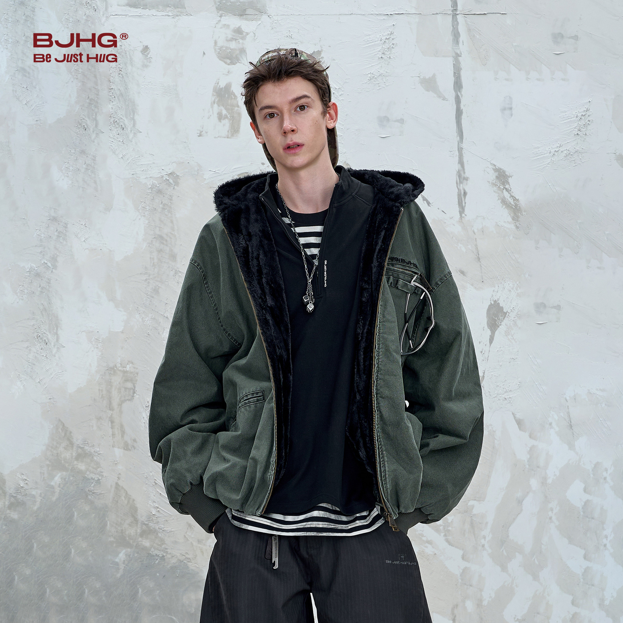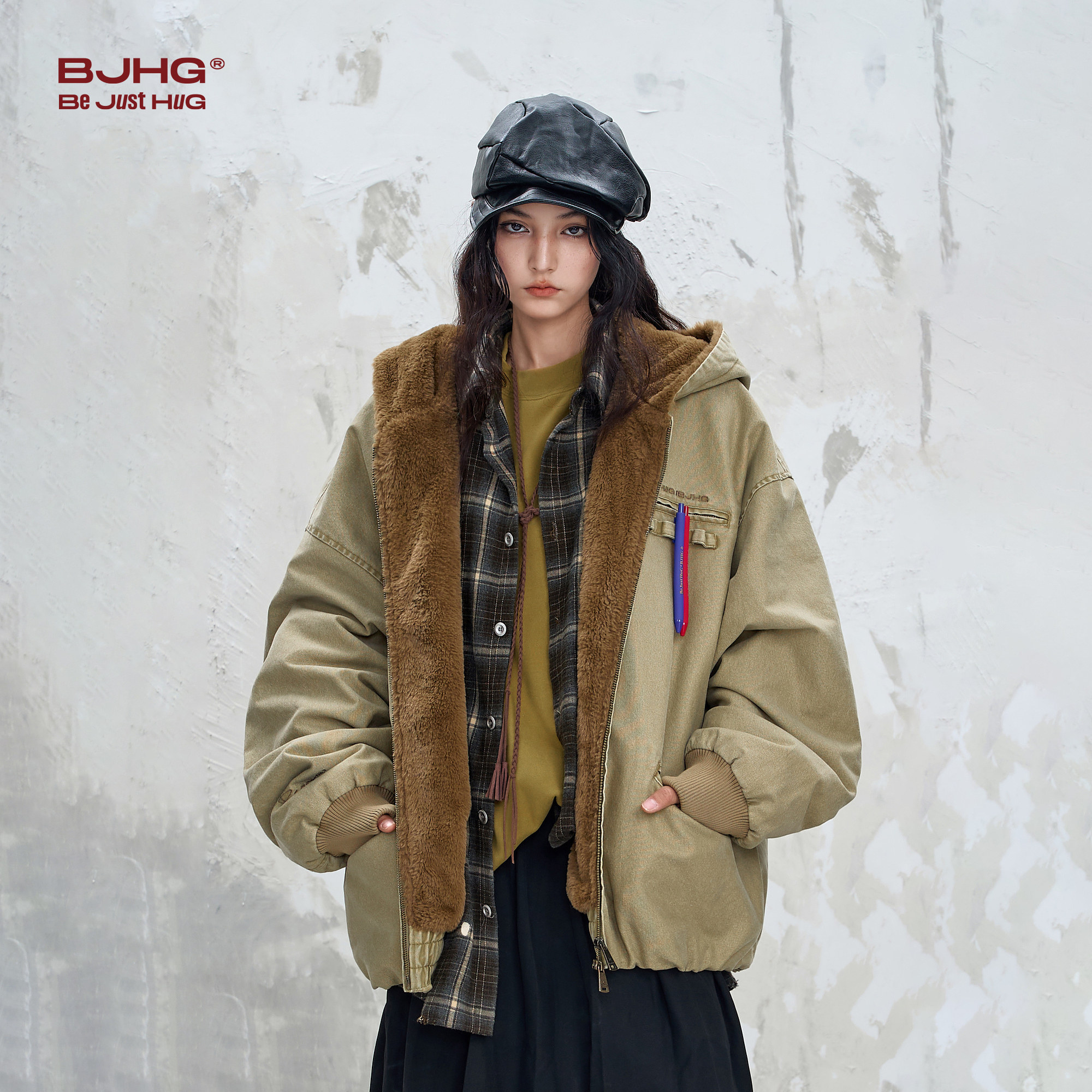美式 冬装 复古做旧仿貂毛棉衣 棉服外套男款 BJHG不计后果巴恩风工装