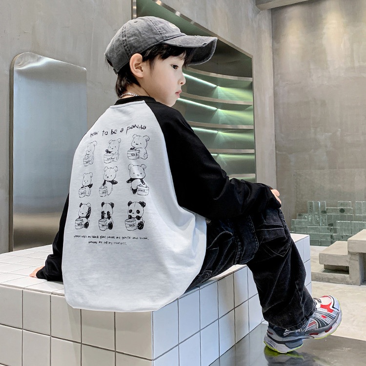 插肩字母宽松打底衫 2025新款 中大童可爱酷帅百搭上衣 长袖 男童秋季
