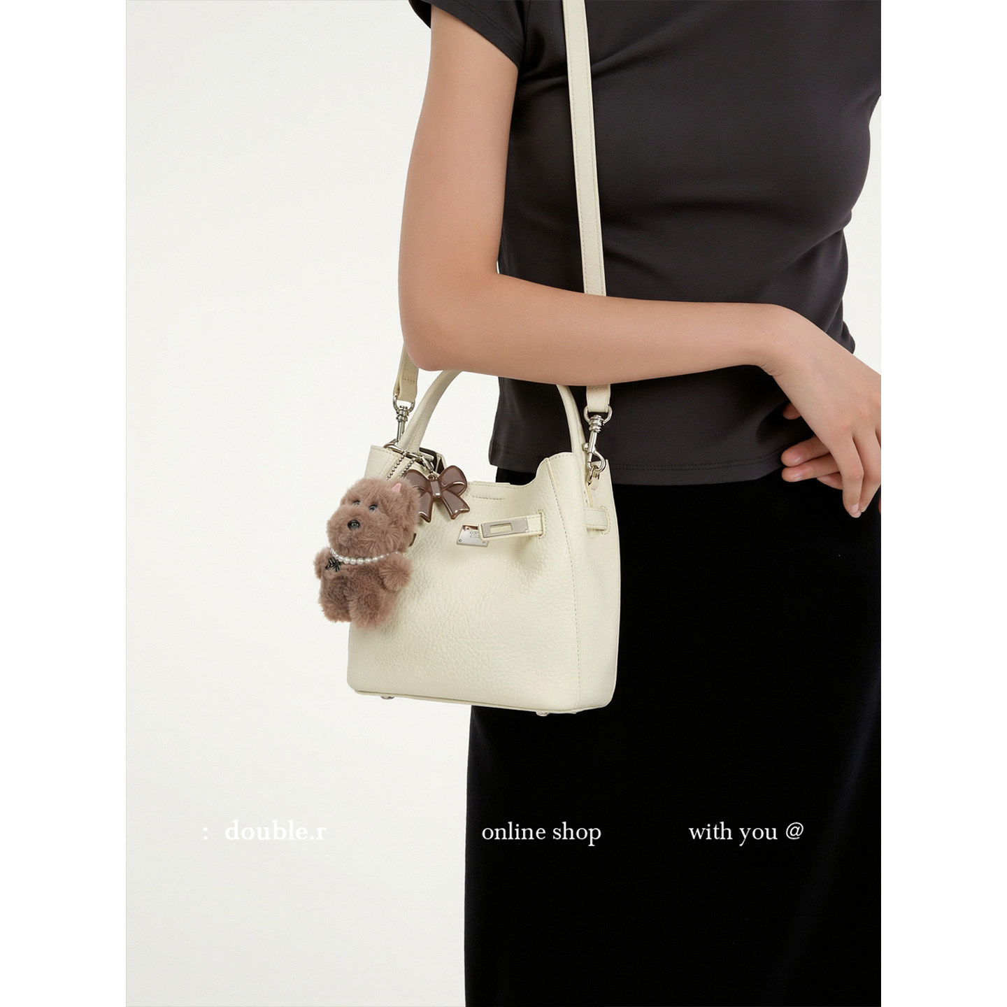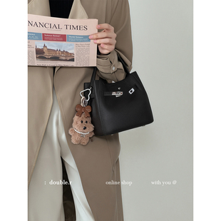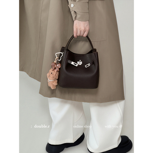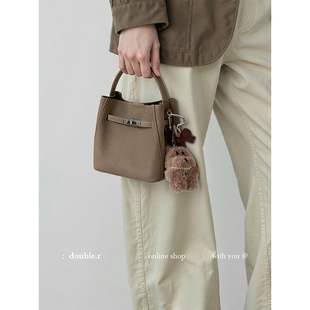 单肩斜挎 荔枝纹皮菜篮水桶包女2025新款 原创·小瑞靓包 优雅回声