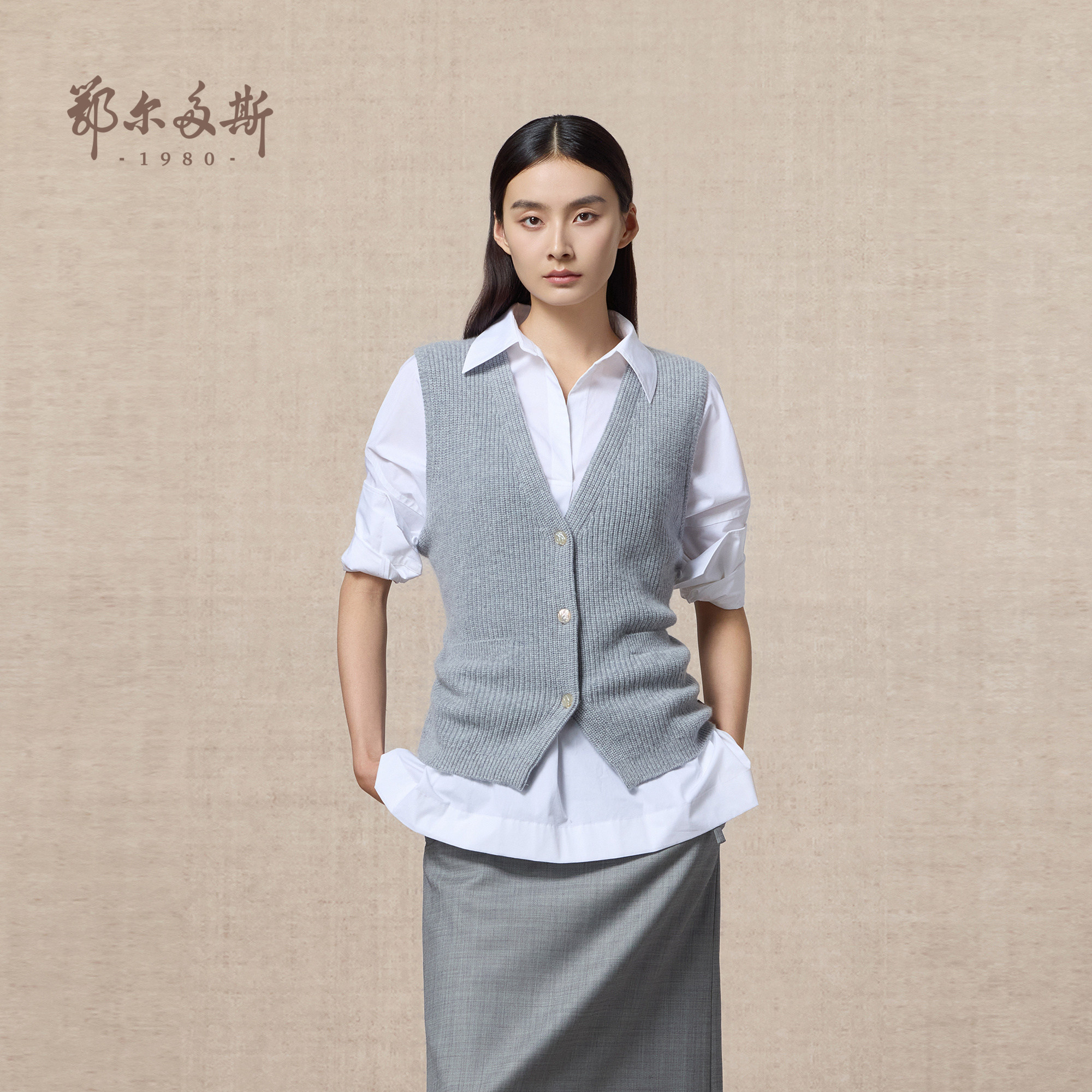 女秋冬通勤百搭套衫 V领纯羊绒针织衫 圆领 鄂尔多斯1980