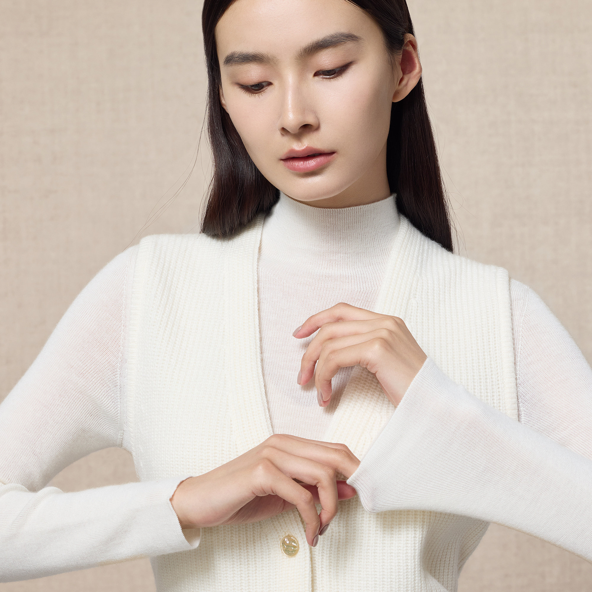 女纯羊绒毛衣针织打底衫 气质美学 100%纯山羊绒开衫 修身 秋冬 法式