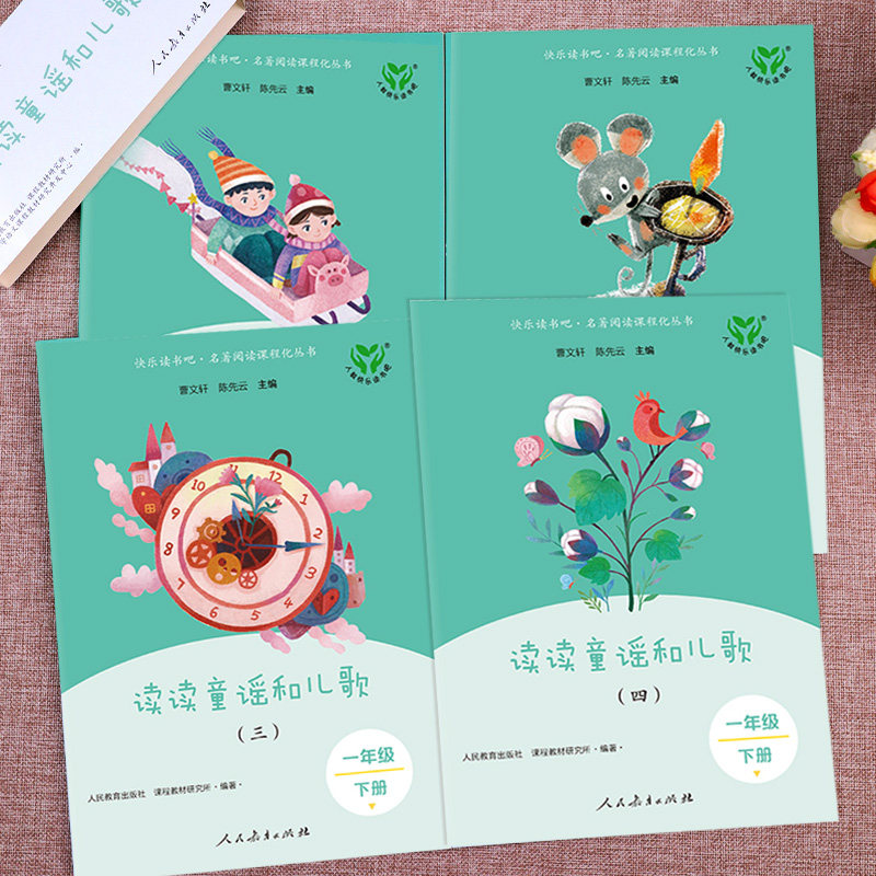 人教版 社 曹文轩快乐读书吧小学生阅读课外书籍必读带拼音和大人一起读上与 人民教育出版 读读童谣和儿歌一年级下册全套4册注音版