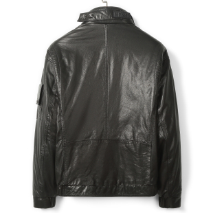 加厚外套 冬季 海宁真皮皮衣头层纯牛皮立翻领桑蚕丝绵夹克男士 短款