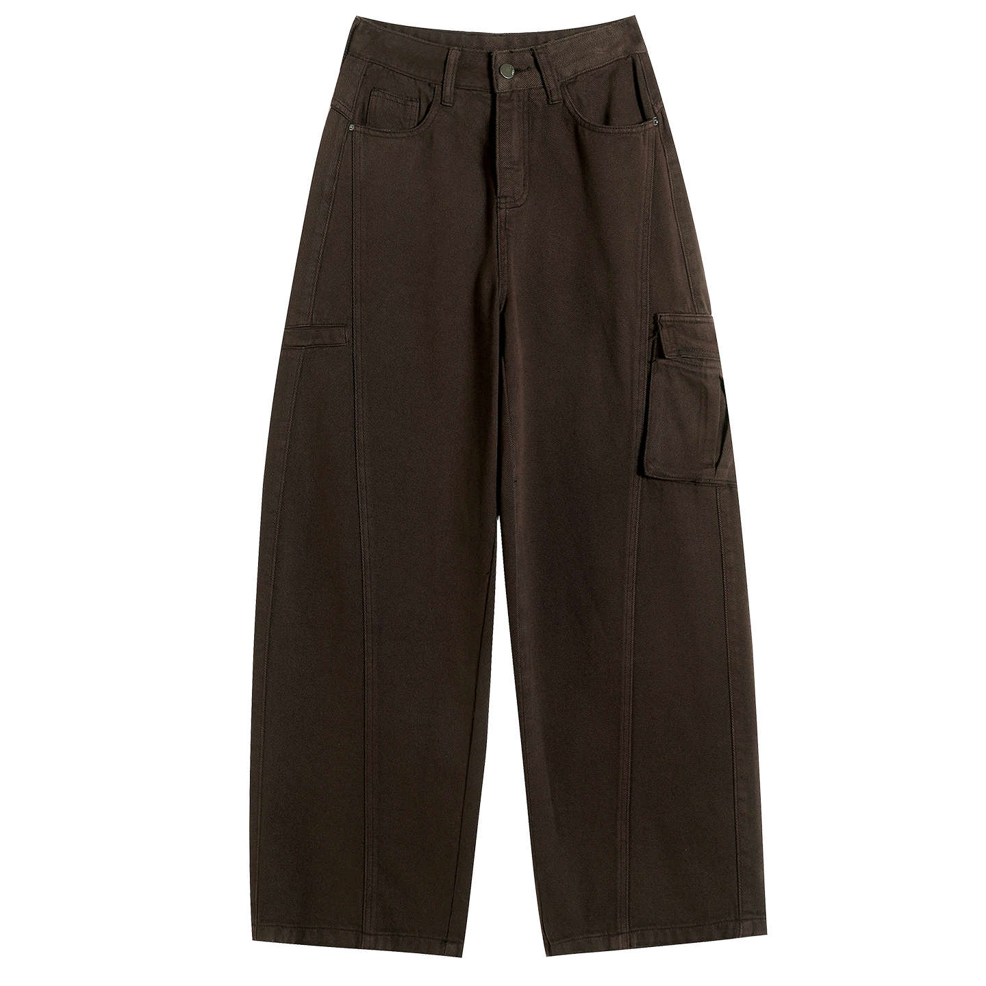高腰宽松休闲长裤 阔色深蓝色阔腿直筒牛仔裤 美式 新款 女2025秋冬季